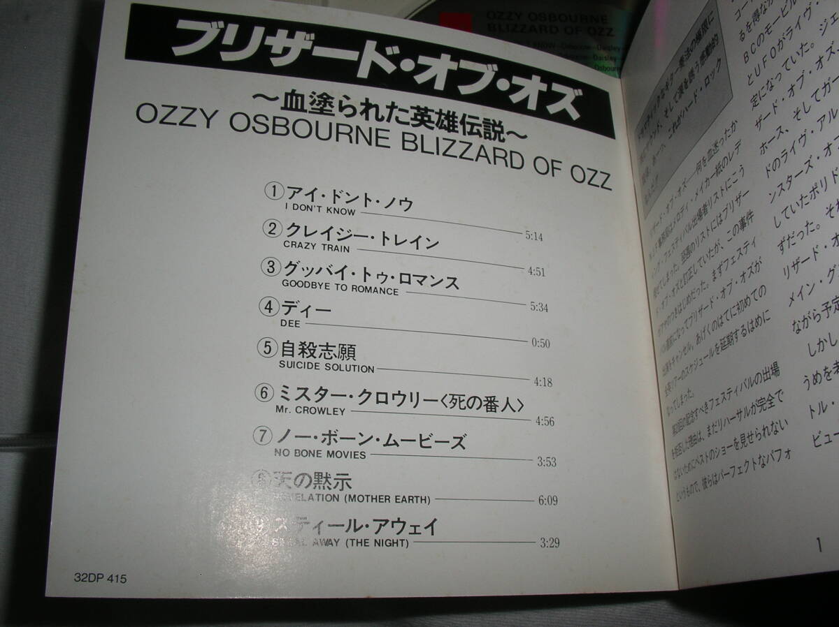| 【32DP 415】 オジー・オズボーン/ ブリザード・オブ・オズ~血塗られた英雄伝説~ OZZY OSBOURNE/ BLIZZARD OF OZZ 初盤 3200円盤 | |||||||||||