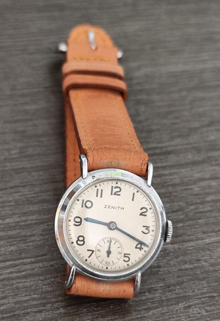 手巻き 稼働品 ZENITH ゼニス レディース腕時計 アイボリーアラビア数字文字盤 二針 スモセコ秒針