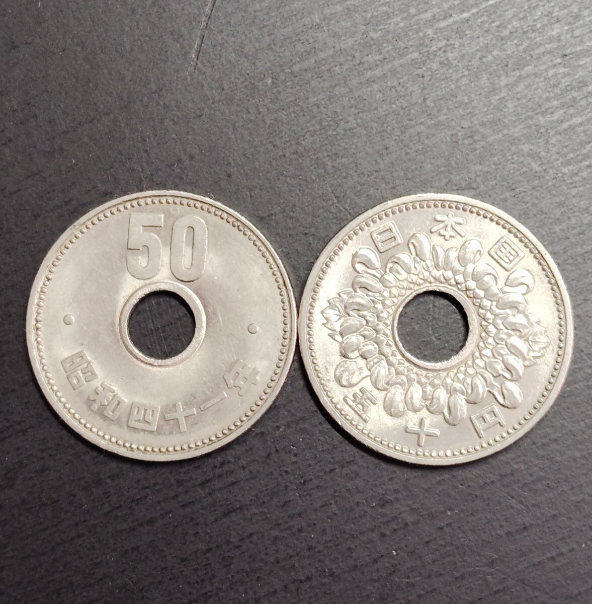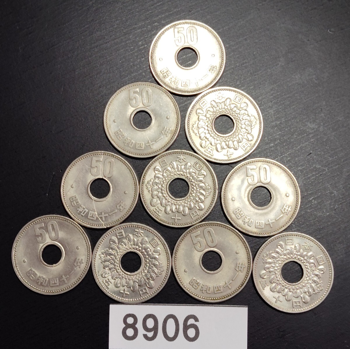 | 商品名稱 : | 8906 昭和41年大型菊穴有り50円硬貨 10枚 |