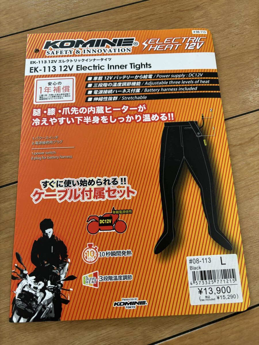 一回試着したのみです。美品とは思いますが、スレ小傷、汚れ有るかもしれません神経質な方はおやめください新品ではありませんコミネ(KOMINE) バイク用 12Vエレクトリックインナータイツ EK-113 08-113 Black L