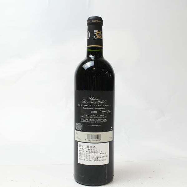 | 商品名稱 : | 1円~Chateau Sociando Mallet(シャトー ソシアンド マレ)50周年記念ラベル 2018 14.5% 750ml X25K120025 |