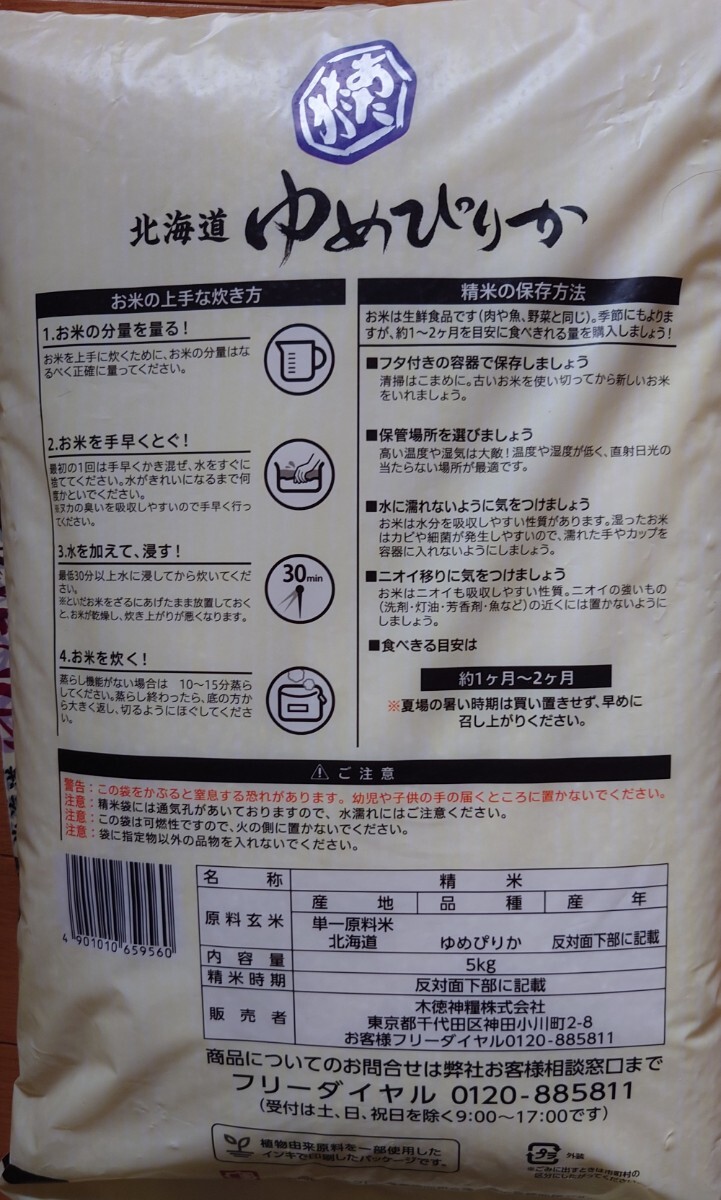商品名稱 : ゆめぴりか 6年度産  北海道産原料米10割使用 5Kg