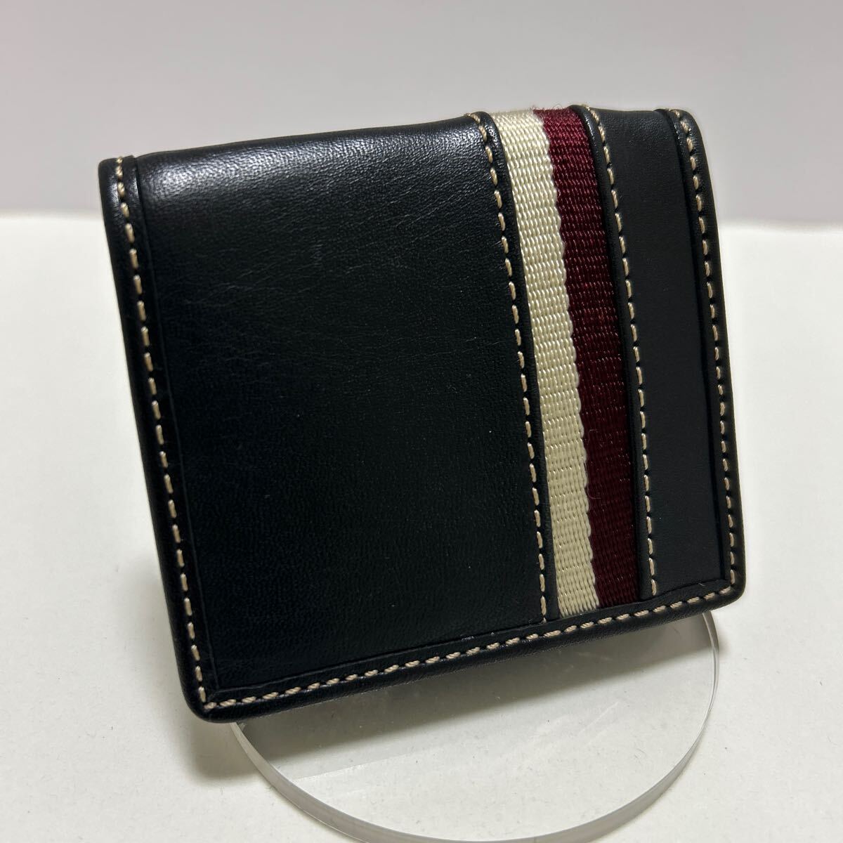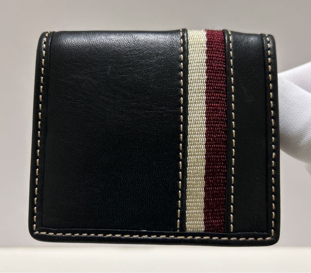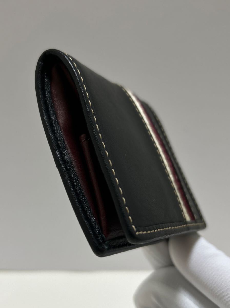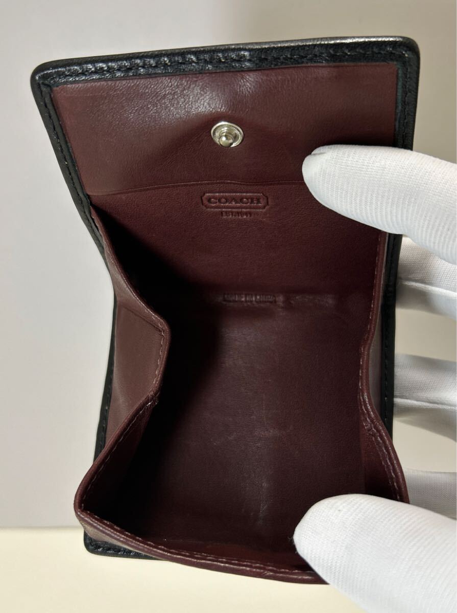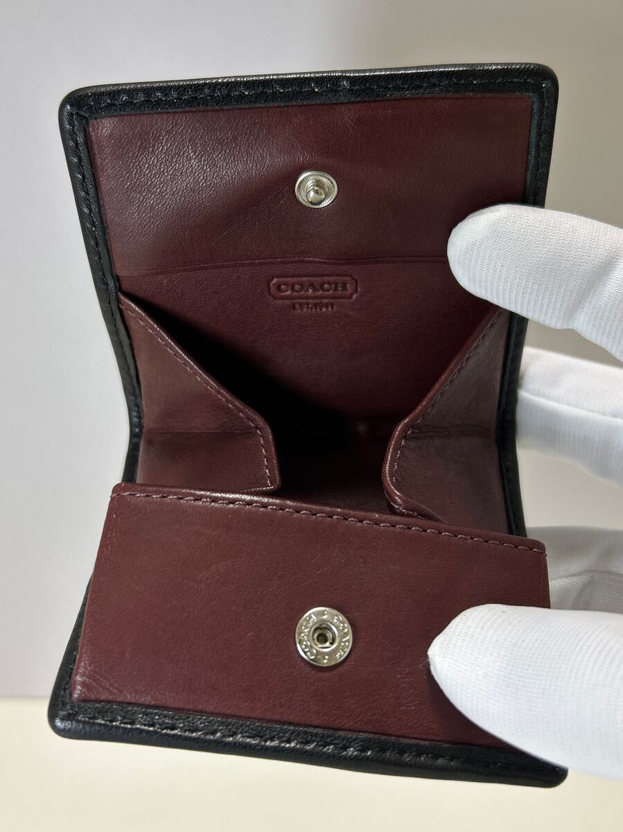 ☆良品☆ ◆COACH コーチ コインケース メンズ◆ 本革 ステッチ BOX型 小銭入れ 黒&ボルドー 正規品保証 【送料無料】0609