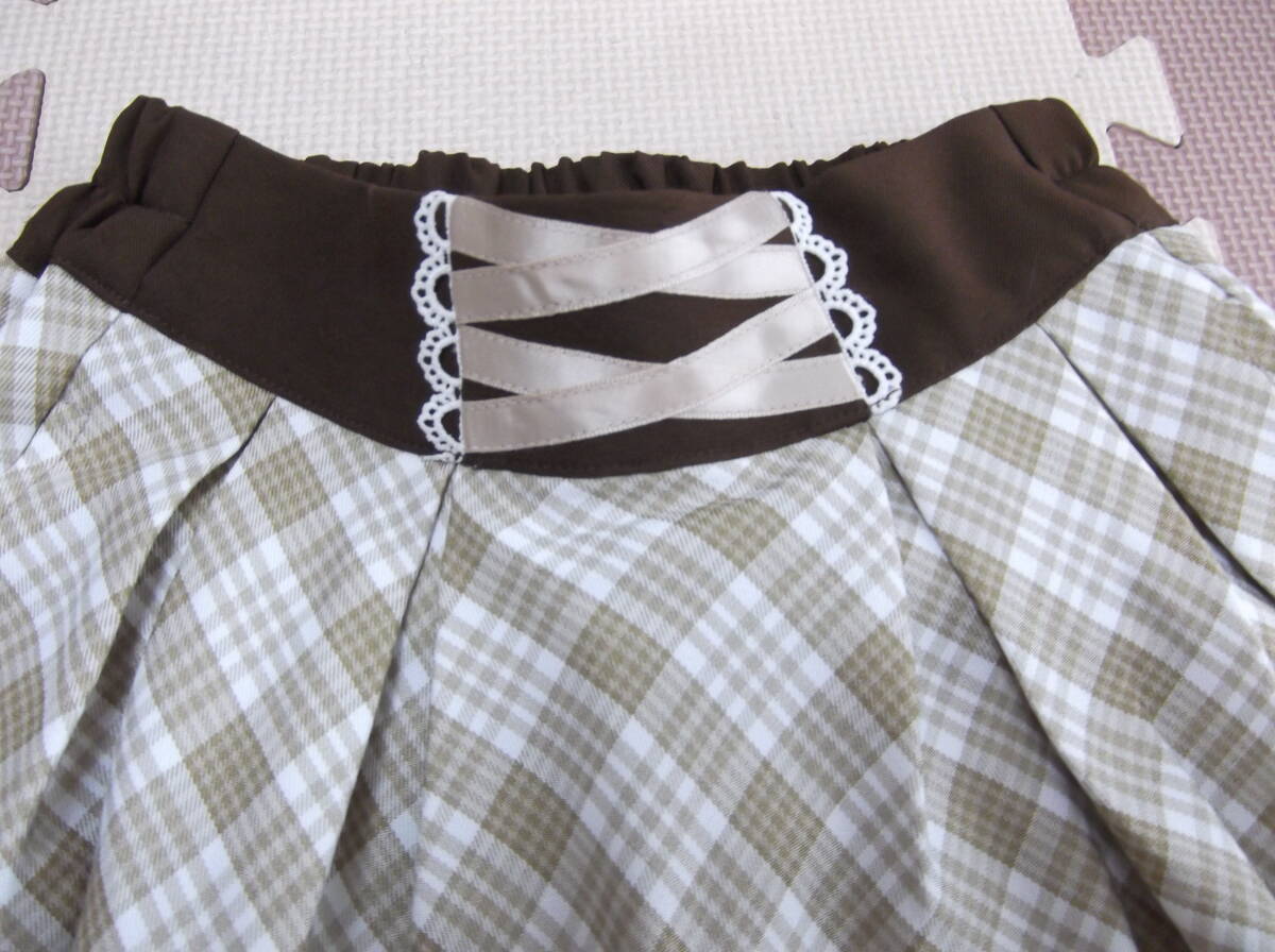 ウエストの編み上げリボンがお洒落さんのポイント。