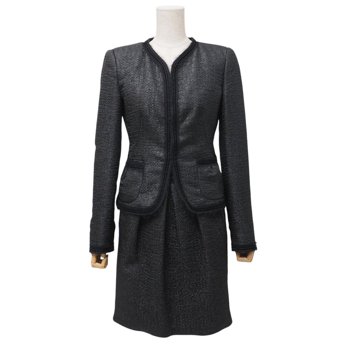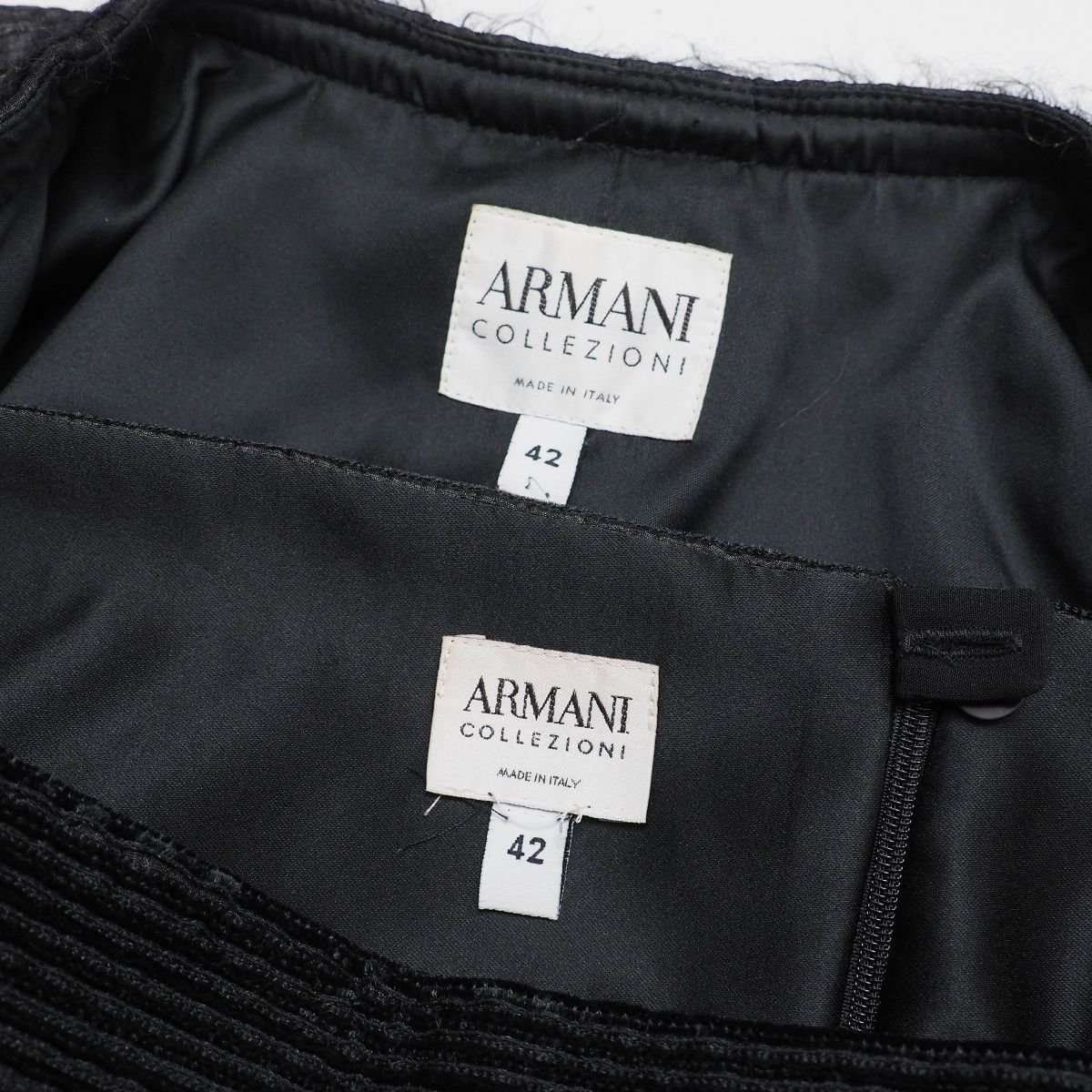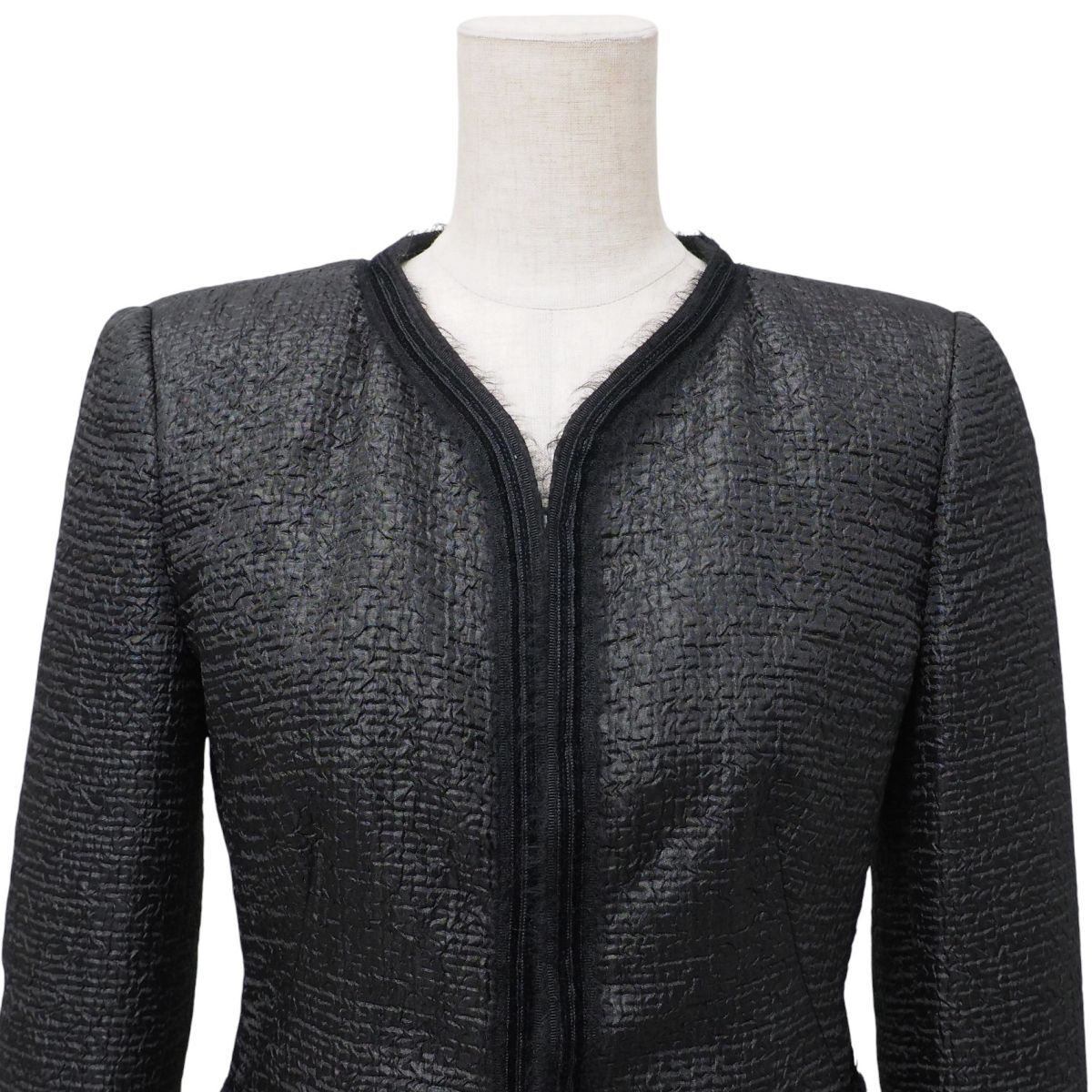 | GR6893☆アルマーニコレツィオーニ ARMANI COLLEZIONI シワ加工 セットアップ スーツ ノーカラージャケット+タイトスカート 黒 サイズ42 | |||