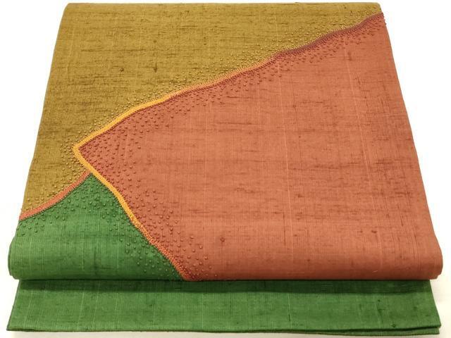 平和屋着物◎中国三大刺繍 相良刺繍 太鼓柄袋帯 紬地 幾何学文様 正絹 逸品 DAAU4697qp