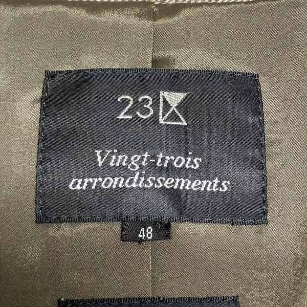 ニジュウサンク 23区 サイズ48 XL - ダークブラウン×白 レディース 長袖/肩パッド/秋/冬 ジャケット