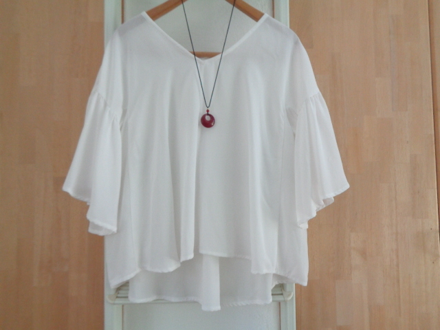 | 商品名稱 : | one way V開き フレアー袖 シフォンブラウス ゆったり切り替えデザイン ドロップショルダー☆ M 白 美品(^^♪ |