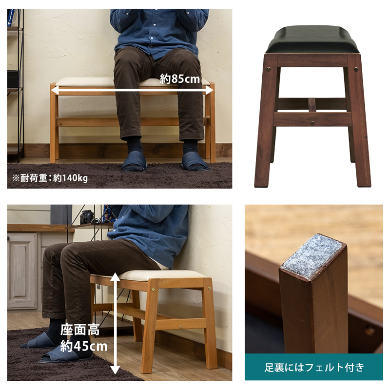 | サイズ | (W)幅85cm×(D)奥行37cm×(H)高45cm 座面の厚み:約5cm |