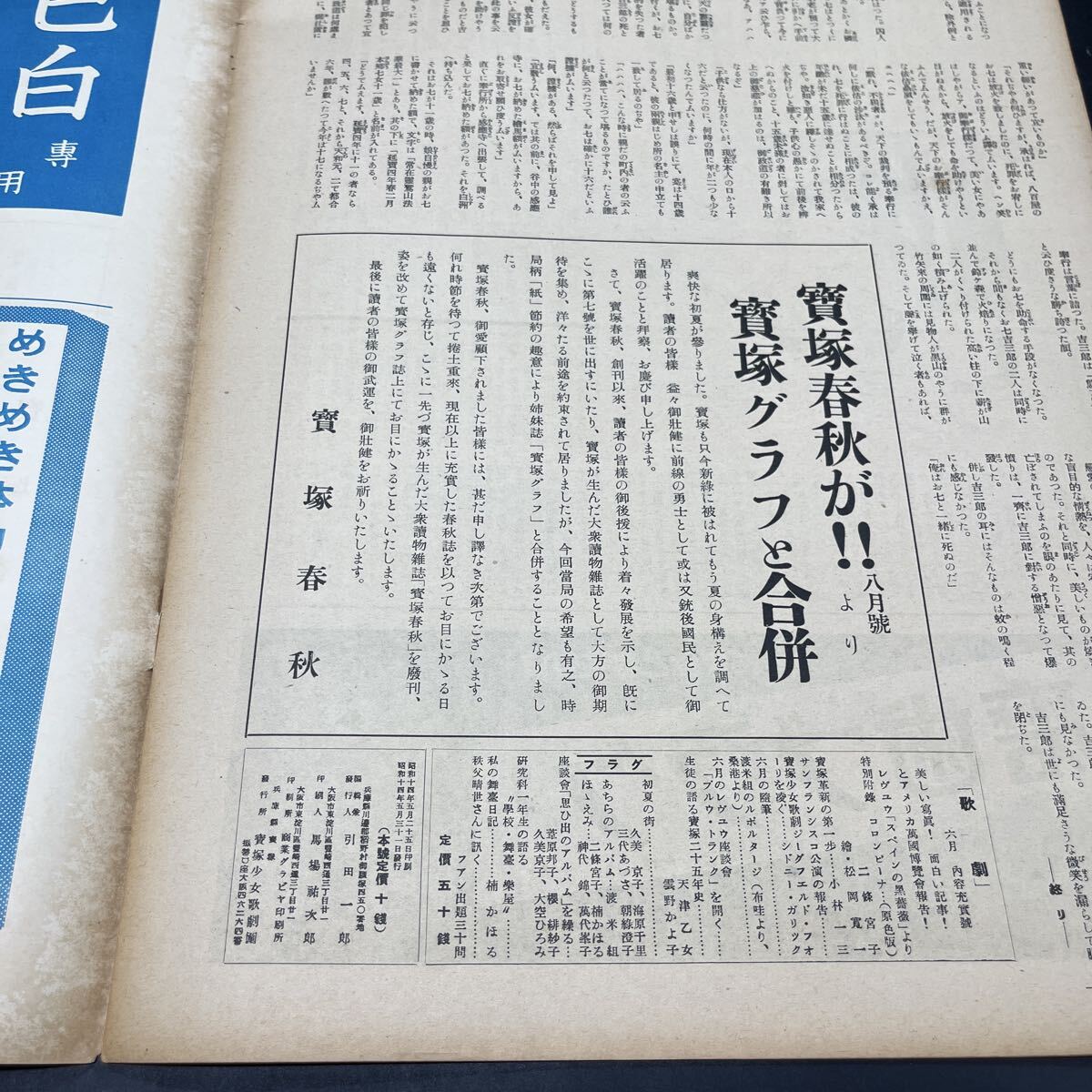 | 商品名稱 : | 【終刊号】戦前雑誌『宝塚春秋(寶塚春秋)昭和14年7月』二條宮子 次号より「宝塚グラフ」と合併 軍馬慰問/月野花子秩父晴世 雲野かよ子 |