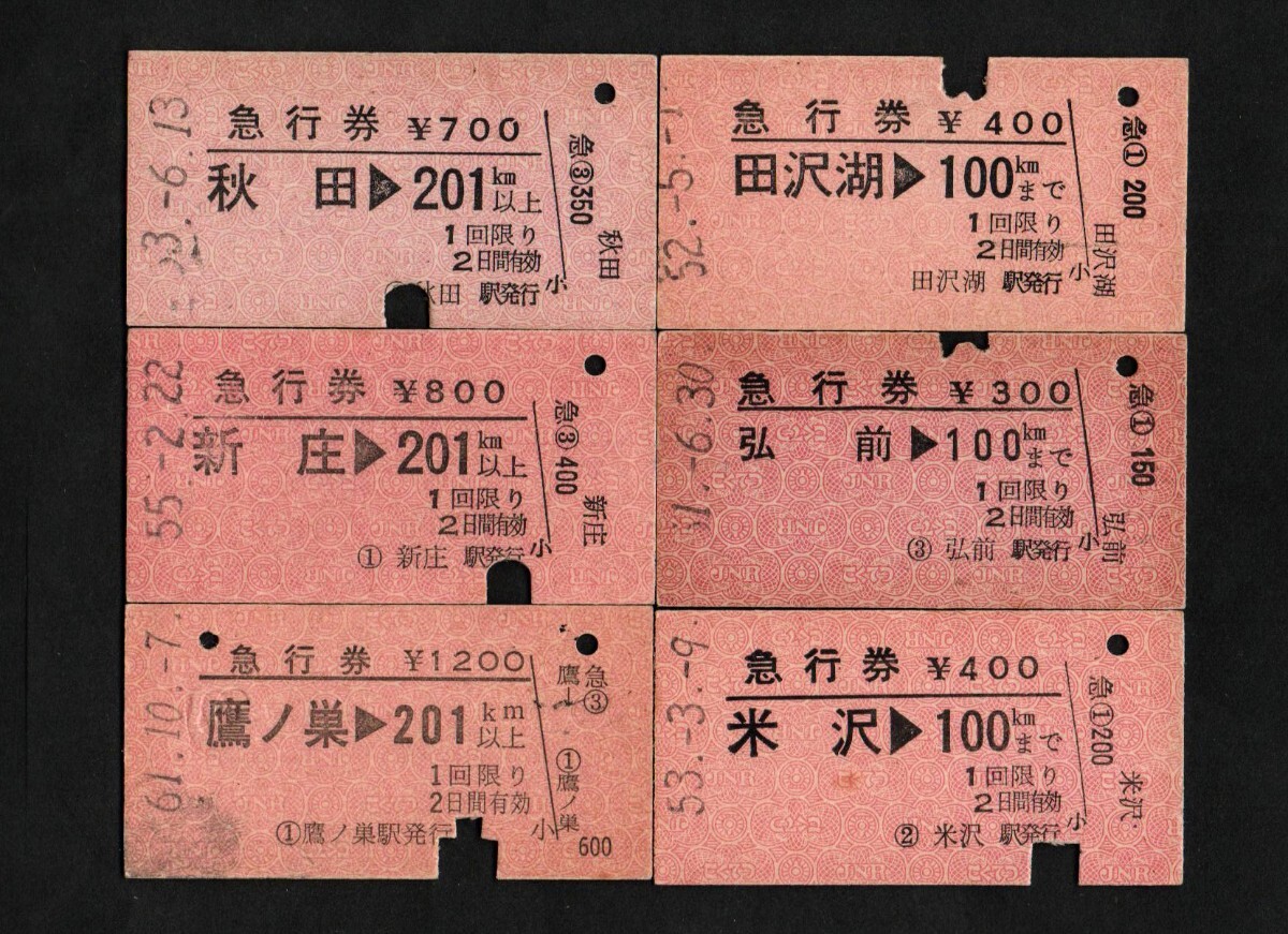 | 商品名稱 : | 国鉄秋田鉄道管理局のA型硬券急行券6枚セット |