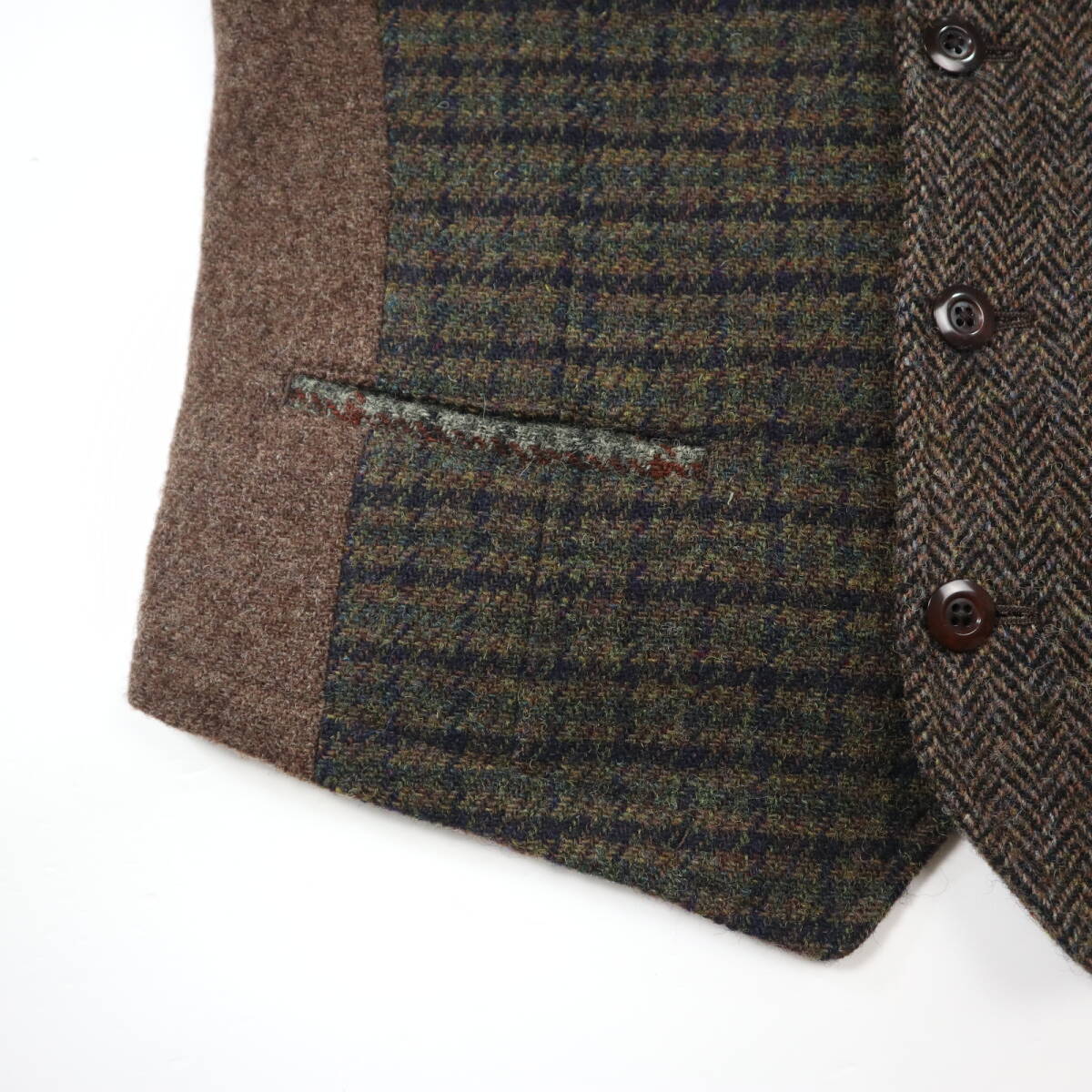 ※大切なお知らせがございますのでご入札やご質問前に必ず最後の注意事項までご覧ください。 ●ブランド BEAUTY & YOUTH UNITED ARROWS×Harris Tweed、ハリスツイードを使用したベストです。こちらはハリスツイードの創業100周年を記念して2010年にリリースされた”Centenary Label ”の限定モデルになります。 ヘリンボーン&チェック、さらに無地の4種類のハリスツイード生地をバランスよく縫製したクレイジーパターンが魅力的なベスト。高級感のある仕立てで、雰囲気抜群のトラッドアイテムに仕上げられています。 株式会社ユナイテッドアローズ製です。 ※ハリスツイード生地は、スコットランドのルイス島でピュアヴァージンウールの段階から紡績・染色をされ、島の職人により一枚一枚手織りで織られた生地にのみハリスツイード協会より与えられるブランドです。 あえてケンプ(死毛)を含ませることで野趣を与えた厚手でざっくりとした独特の風合いと自然な色合いが特徴的です。 ●カラー マルチカラー ●素材 表地 前身頃/毛100 後身頃/毛43,コットン40,ポリエステル17 裏地/コットン100 ●表記サイズ (M) 下記の実寸をご確認ください 背面着丈(背中の襟元から背面裾まで)55cm 前面着丈(前面の襟元から前面の裾まで)61cm 身幅(左右脇の付け根を直線)45cm 肩幅30cm (多少の誤差はご了承ください) ●コンディション USEDになりますが比較的に着用回数は少ない感じで良好です。ダメージやスレほつれ・穴破れ・汚れ・汗染み・色褪せ・毛羽毛玉などもなく、しっかりした綺麗な状態ですので今後も十分普通に問題なく着用いただけます。 |