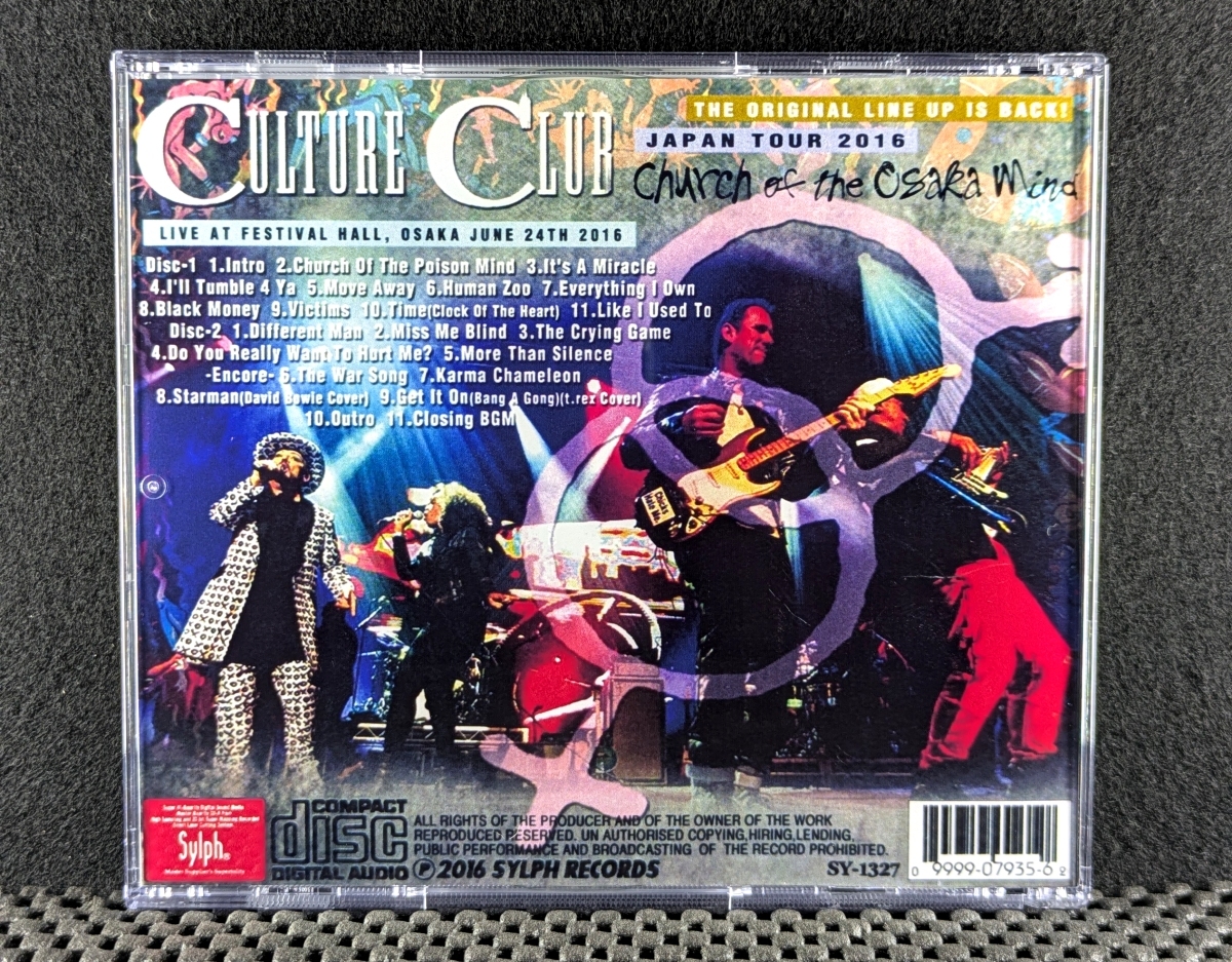 80年代に一世を風靡したボーイ・ジョージ率いる英ポップ・バンド、カルチャー・クラブがオリジナル・メンバーで16年振りに来日!その2016年ジャパンツアーより、6月24日大阪公演(ツアー最終日)を迫力&臨場感満点の極上級/超高音質にて完全収録!ライヴは、ジョージ、モス、ロイ・ヘイ、クレイグのメンバー4人に、キーボード、ホーンセクション3人、ギター、パーカッション、女性バック・ヴォーカル3人の総勢13人からなるビックバンド編成!!良質な豪華サウンドで奏でる名曲の数々に、往年のファンは悶絶必至でしょう!!ボーイ・ジョージの声がハスキーに変わってはいるものの、抜群の歌唱力は今なお健在!また、強者バックメンバー等の演奏もさすが一言で、随所で見られる盛り上げ上手で巧みなライヴ・アレンジも秀逸です!