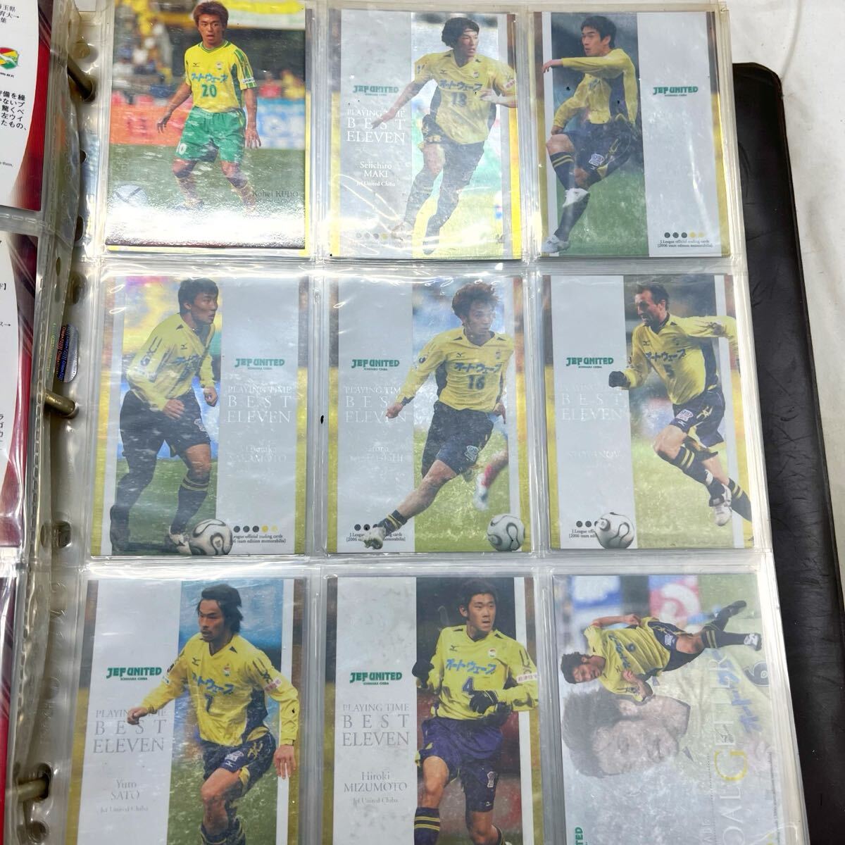 ■商品名/概要 Jリーグ公式トレーディングカードの大量まとめです。9ポケットリフィル約90枚に収納されたアルバム付き一括出品。目算約700枚(一部空き・重複あり)。 本ロットは直筆サインカードが多数確認でき、さらにキラ/インサート多数で見映えの良い内容です。中心は柏レイソル/JEFユナイテッド(市原)。 ■主な収録(画像から判読できた一部) 柏レイソル:明神智和、サンパイオ、洪明甫、黄善洪、柳想鉄、酒井直樹、渡辺毅、下平隆宏 ほか JEF市原:篠原賢治、武藤真一、山口智、江尻篤彦、後藤義一、松原良香、マスロヴァル、野村陽一、敷田高義 ほか インサート:BEST ELEVEN(金ホロ)、MVP/GOAL GETTER系 等 備考:一部プリント(箔)サインも混在する可能性があります。詳細は写真をご確認ください。 ■枚数・構成 リフィル:約90枚(9ポケット=最大810ポケット相当) 総数:約700枚(概算/重複・チーム混在・年代混在) ■コンディション カード:年代相応の角スレ・表面スレあり。キラ面は細かな擦れが見られる場合があります。 サイン:油性ペンの筆跡が見られる直筆品多数(にじみ・かすれあり)。 アルバム/リフィル:表紙にスレ・小へこみ商品可能有凹損、塌陷,請下標前詢問清楚且注意。 、リフィルにくもり・穴部のヨレ等の使用感。 大量一括のため未チェックの見落としはご容赦ください。バラ売り不可。 ■おすすめポイント 90’s〜00’s期の名場面を柏・JEF中心に網羅。 直筆サイン多数+キラ多数でコレクションの主役に。アルバム収納済みで届いてすぐ鑑賞可能。 ■仕入れについて 当店は自社運営の買取専門店です。お客様から直接お譲りいただいたお品を丁寧に選別して出品しています。 ■発送について アルバムを緩衝材で厳重梱包し、佐川急便にて発送予定(小型の場合はお手軽配送を利用)。 —— 管理番号:DOI2025901-10 古物商許可:大阪府公安委員会許可第62210R036704 >