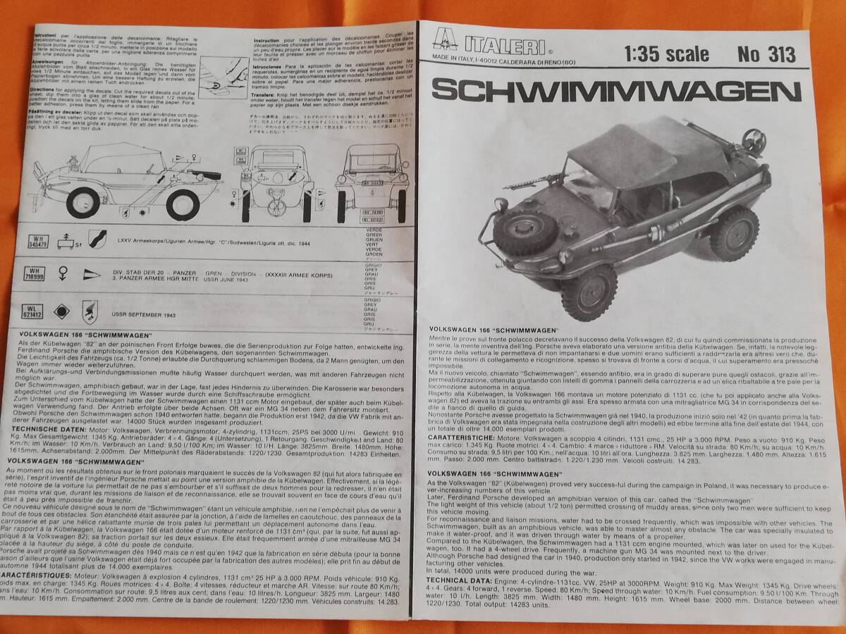 【送料無料】ITALERI イタレリ 1/35 SCHWIMMWAGEN シュビムワーゲン No313