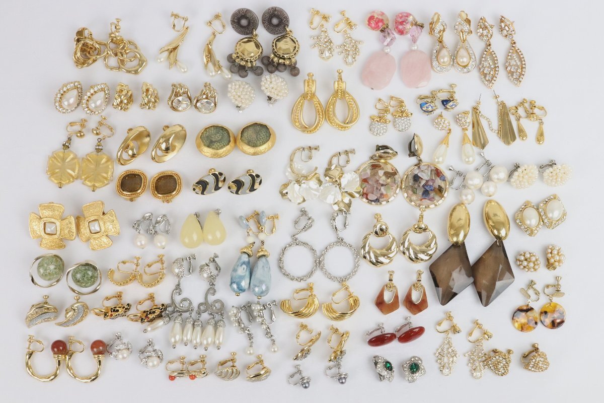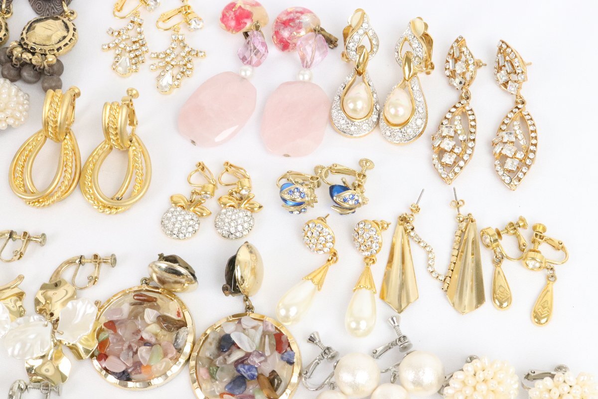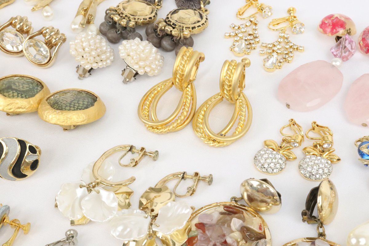 豪華 デザイン イヤリング ピアス 50点以上 まとめて 大量 全て左右揃い ゴールドカラー 真珠 ラインストーン など パール 【彩irodori】