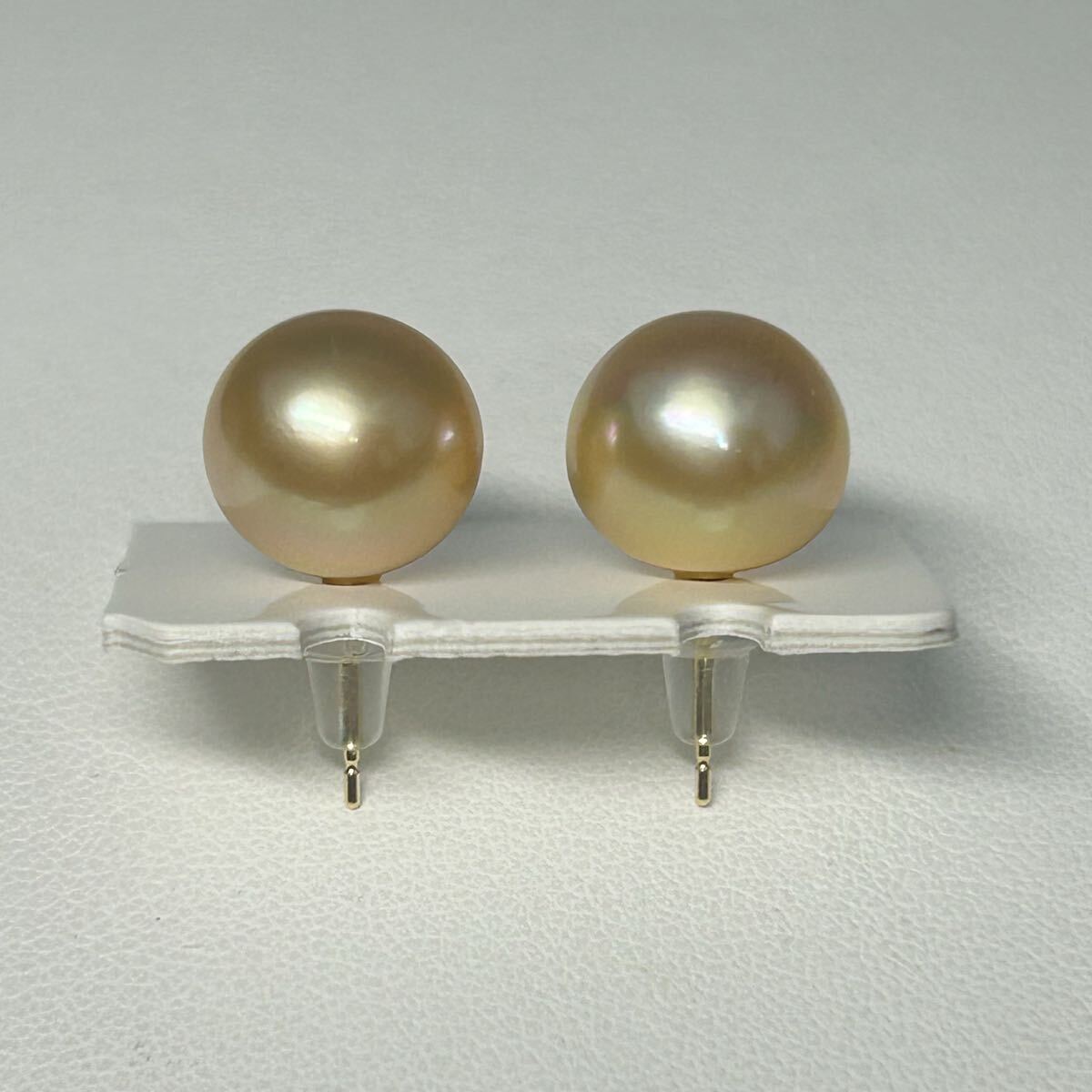 【光沢抜群!10.9mm 】K18 天然 白蝶真珠 南洋パール 照り艶抜群 直結ピアス 南洋白蝶真珠 3.9グラム pearl jewelry ジュエリー