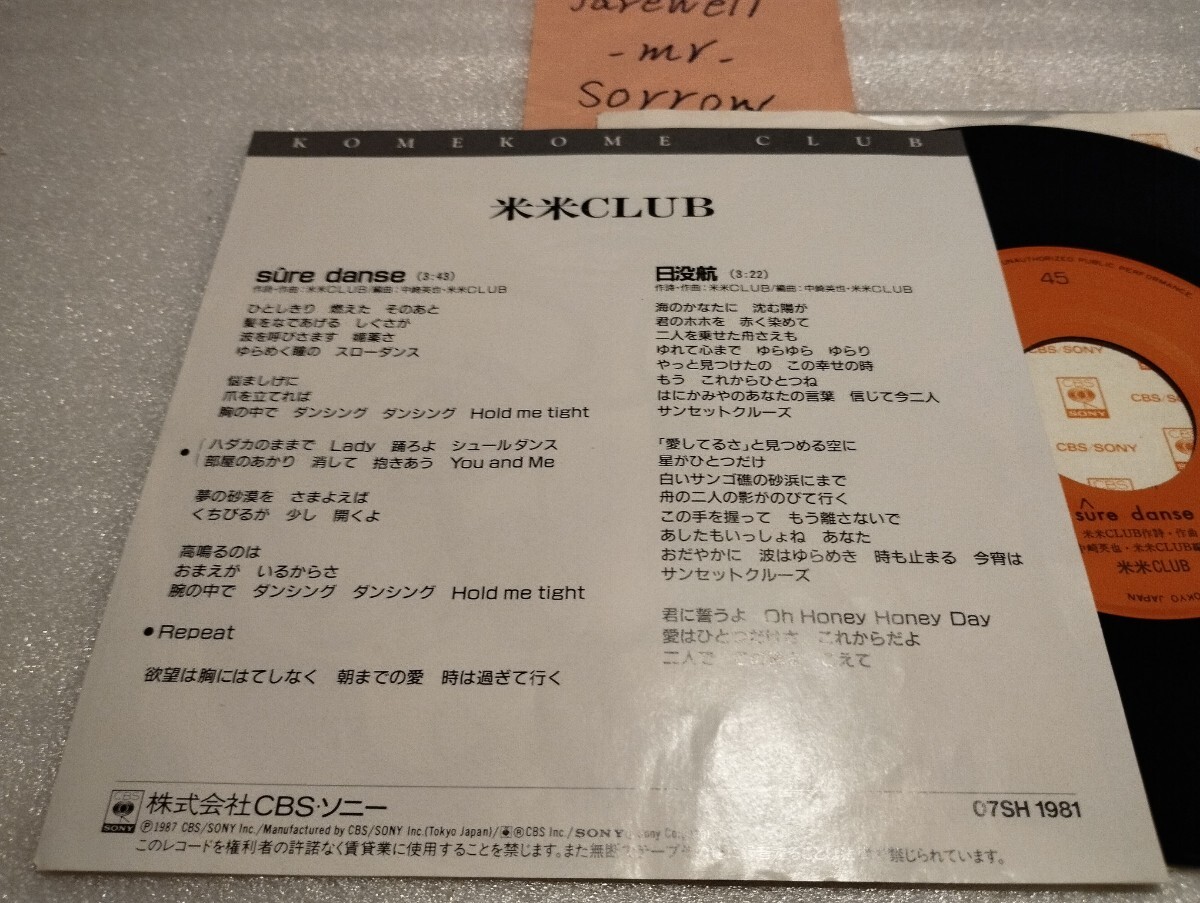 | 商品名稱 : | 米米CLUB sure danse シングルレコード CBS SONY 07SH 1981 シュール・ダンス 日没航 石井竜也 ジェームス小野田 和モノ 7インチアナログ盤 |