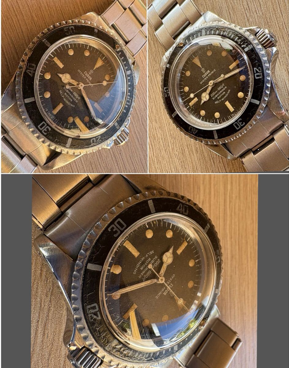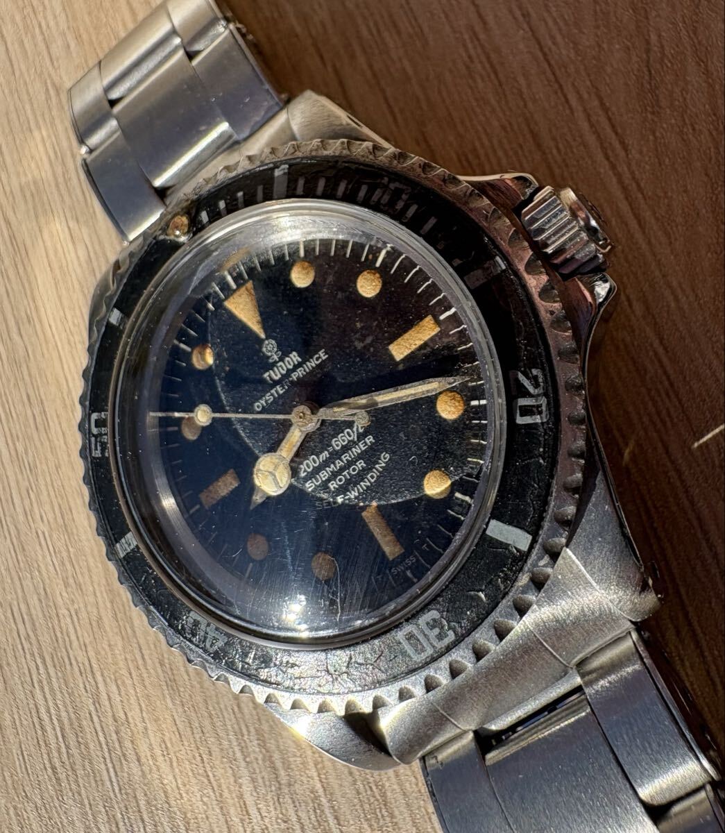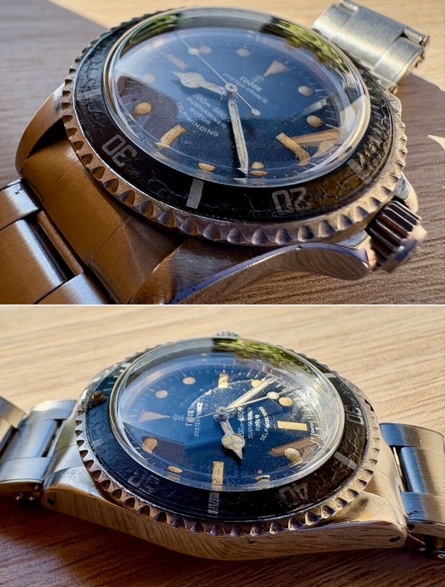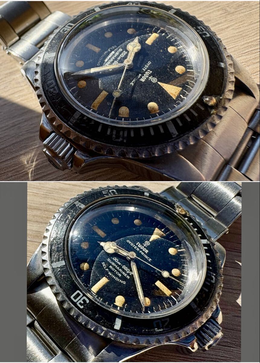 ●Tudor-submariner /Black アンティーク古董商品,有可能客製化、修改、換過零件,請下標錢注意。 oldリダンダイアル /王冠飛出し20㎜ブレス付属(リペア品)