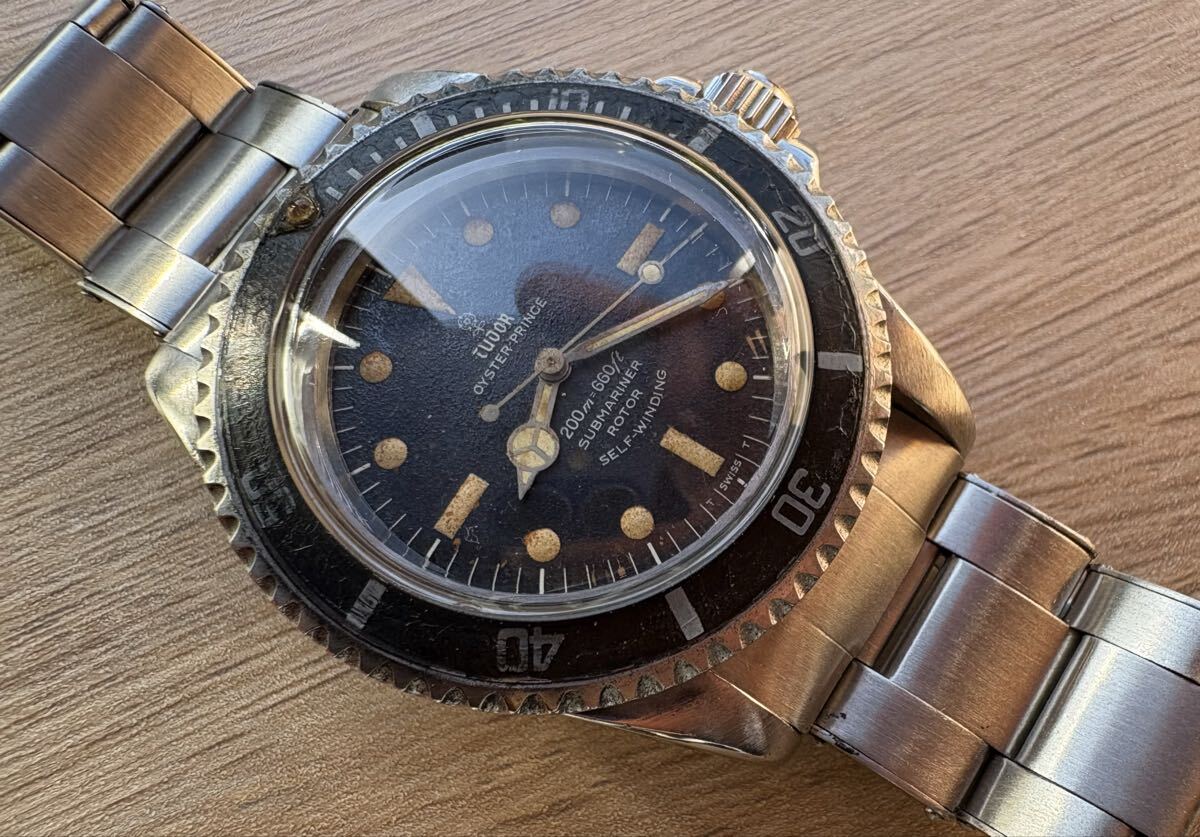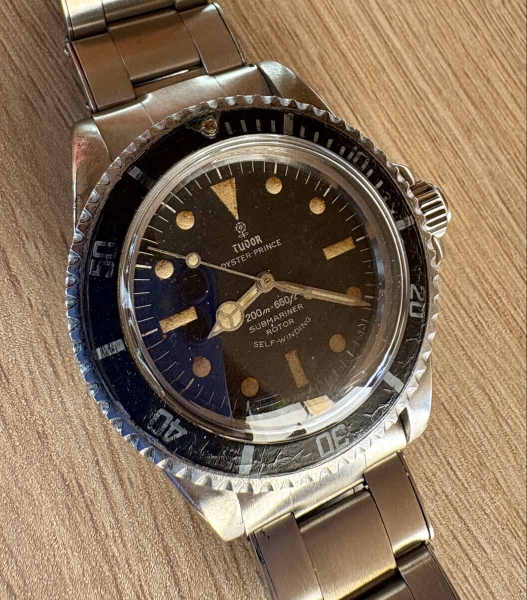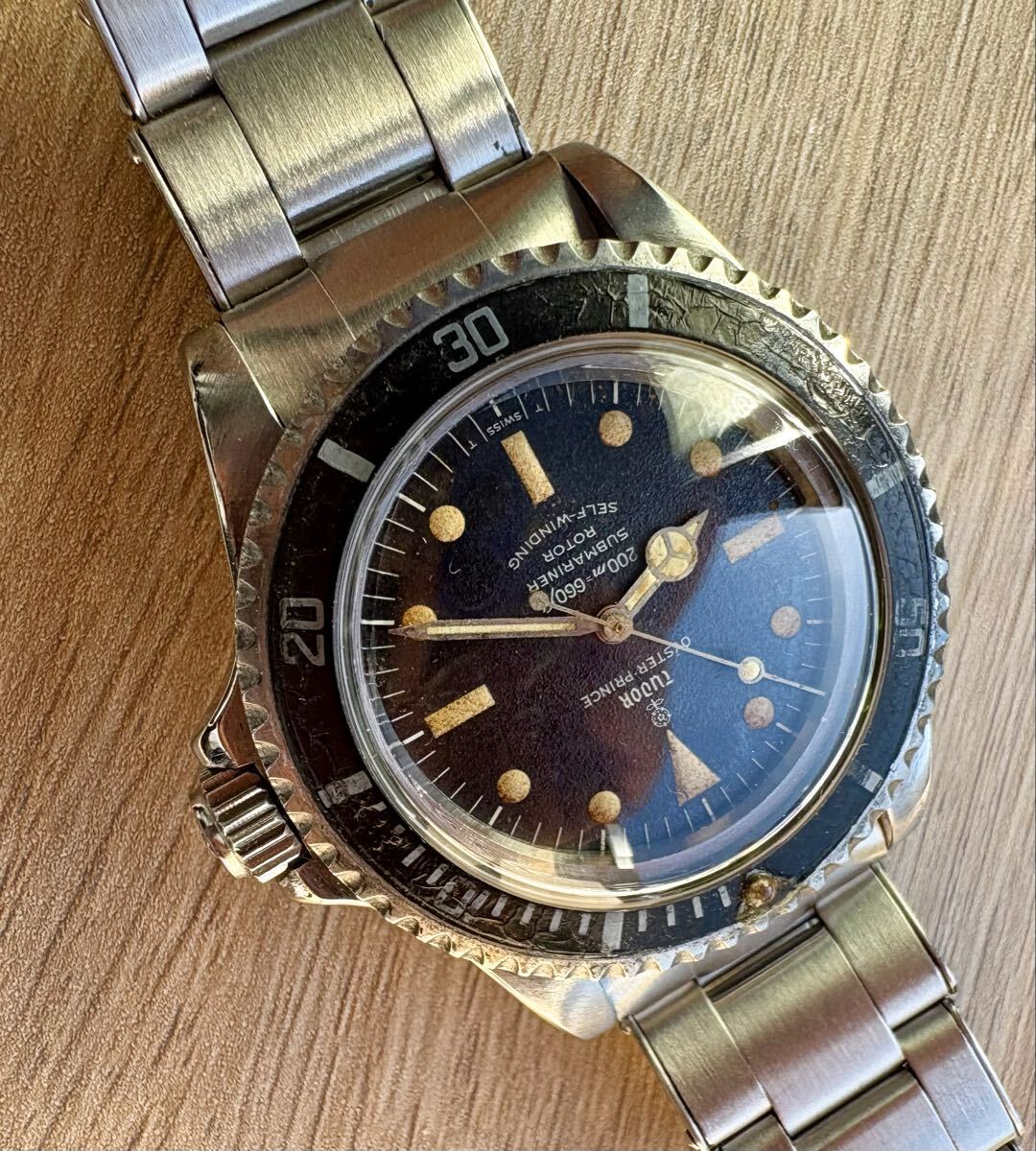 ●Tudor-submariner /Black アンティーク古董商品,有可能客製化、修改、換過零件,請下標錢注意。 oldリダンダイアル /王冠飛出し20㎜ブレス付属(リペア品)