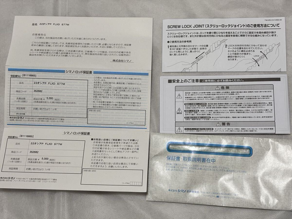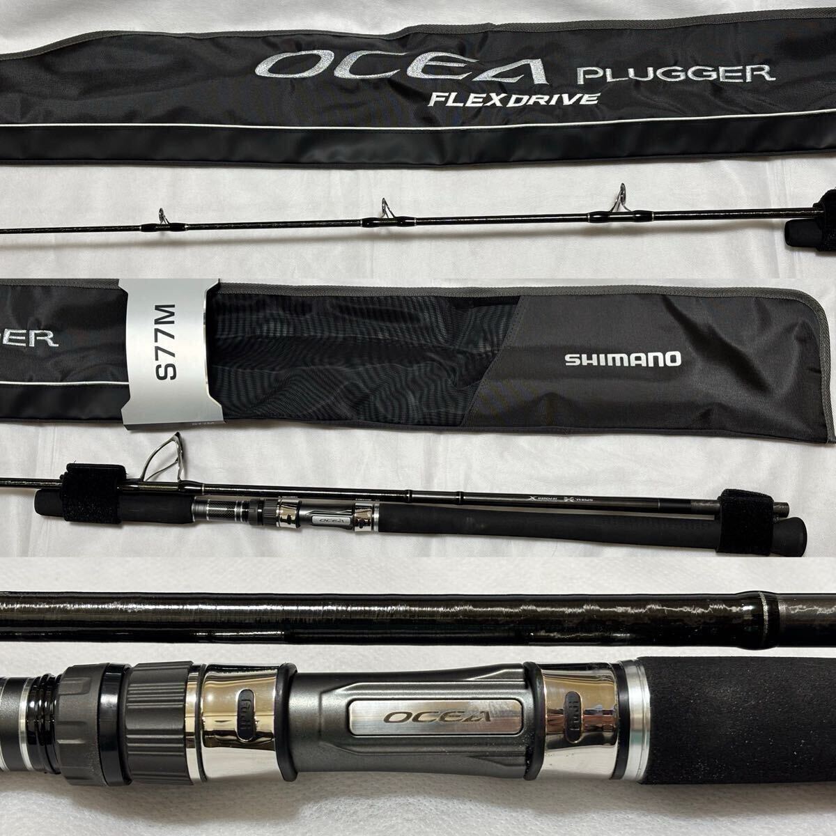 ◆商品説明 ・製品名:22オシアプラッガー フレックスドライブ S77M 2022年モデル OCEA PLUGGER スピニング キャスティングロッド ・メーカー名:シマノ SHIMANO ・製品仕様 ◆全長:2.31m ◆継数:2 ◆仕舞寸法:171.5cm ◆先径:2.6mm ◆ルアーウエイト:MAX100g ◆適合ラインPE:MAX5 ◆最大ドラグ:10kg ◆最大ドラグ角度:60° ◆グリップタイプ:ストレート ◆シールシート位置:410mm ★守備範囲の広いオールラウンダー。 S76MLと同じくキャストのしやすさと操作性に優れたショートレングスながら、PE3号〜5号、プラグ40〜100gに適応するパワーを秘め、10kg超の青物や30kgクラスのマグロ類といった大型魚も視野に入る。 適合リールは5000〜10000番。 ■タイプ:スピニングロッドモデル ・使用状態: 2022年1月に購入した商品です。 釣行には1回だけ持ち込みましたが、使用することがなく、実釣としては未使用です。使用後は水洗いし、しっかり乾燥させた上で、購入時の袋に入れて大切に保管しておりました。 とても気に入っている製品だったのですが、クローゼット整理のため、この度出品させていただくことにしました。 お安く出品させていただきますので、この機会にぜひご検討ください。 ◆注意事項 ※程度・状態は個人差がございますので、最終的には画像で判断していただきご入札をお願い致します。 ※素人検品の為、見落としている場合がございますのでご了承ください。 ※出来る限り商品の状態がわかるように出品いたしますが、あくまで個人出品の品物ということをご理解の上ノークレーム・ノーリターン賣家不提供退貨賠償等責任 でお願いします。 ※落札後こちらから連絡をし、3日以内にご連絡が無い場合はキャンセルとさせていただきます。 ◆発送詳細 ※発送は基本「飛脚ラージサイズ宅配便220サイズ」での配送になります。送料は画像8枚目にてご確認下さい。 他にリクエストなどがあれば、取引ナビにて承ります。 ※仕事の都合上平日の帰りが遅いため、発送は入金確認から2-3日後になる場合がありますのでご了承下さい。 その他、不明点はご質問ください。 それでは何卒よろしくお願い致します。 >