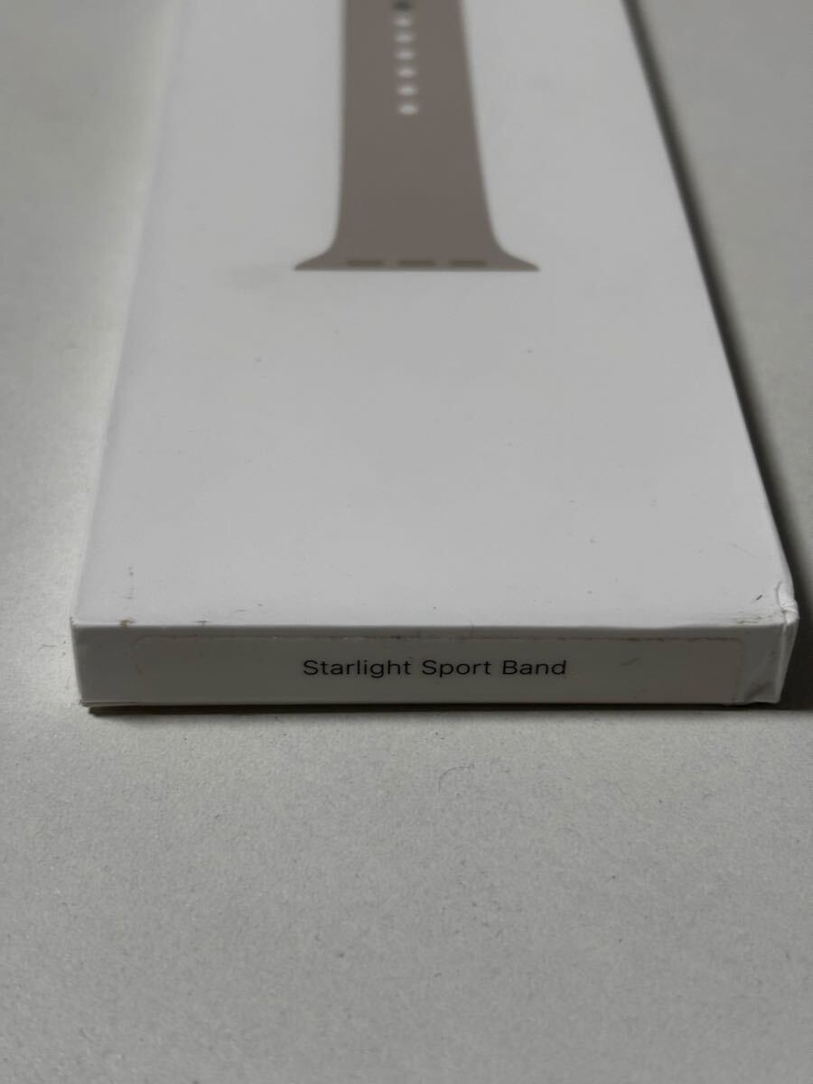 ご覧いただきありがとうございます! 新品・未使用のアップル純正 アップルウォッチ 41mm (38~41mmケースとApple Watch Series 10の42mmケース用) スポーツバンド・スターライトです。こちらの商品にはS/MとM/Lサイズの両方のバンドが入っています。 互換性:Apple Watch Series 1~9・SE (第1世代・第2世代)の38mm、40mm、41mmケース、およびApple Watch Series 10の42mmケース 状態:新品・未使用品ですので、中身のケースにキズ・汚れ等は全くありません。ただし、外箱には在庫管理の際にできた軽微なスレが見られる場合や、箱にダメージがあるもの、在庫管理用バーコードシールが残っている場合があります。未開封か開封済かについては、写真通りの状態の商品をお送りします。 価格:アップル純正品を取り扱う販売店より処分在庫をまとめて買い取ることによって、アップルストアでの販売価格と比べて、低価格にて販売させていただいております。※毎週の在庫状況により価格は柔軟に見直しを行なっておりますので、価格は頻繁に上下する点、ご理解いただけますと幸いです。特に入手が難しい在庫については、仕入れ価格が高騰していることより、価格が上がることもあります点、ご理解いただけますと幸いです。 純正品 vs. 模倣品:出品されている商品はアップル純正品です。模倣品と比較すると、アップル純正品は見た目の美しさ、手触りの良さ、細部の仕上げ、耐久性等の点が全く違います。 返品・返金:商品をご購入・お受け取りになり、万が一、ご満足いただけない場合はご返品ください。全額返金させていただきます。 >