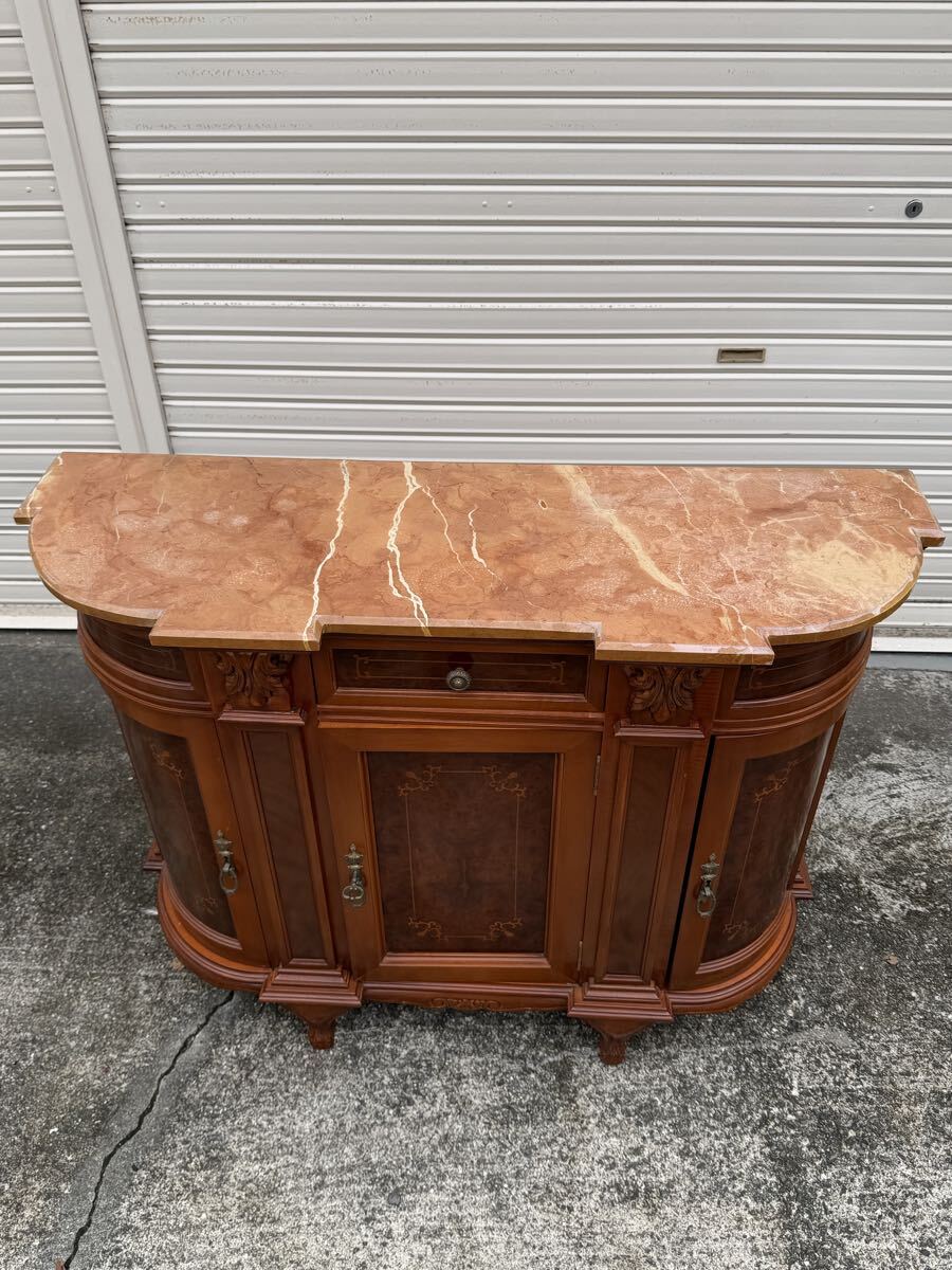 イタリア製 アンティーク クラシック サイドボード 象嵌細工 大理石 ロココ調 キャビネット マホガニー材