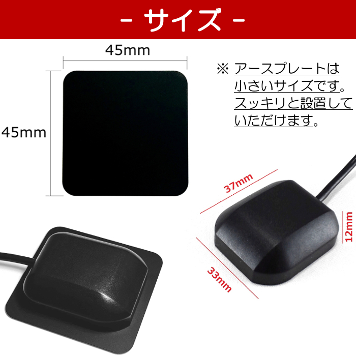 | CN-F1D9GD CN-F1D9HD GPSアンテナ パナソニック ストラーダ 互換品 アースプレート セット GT5 コネクター ケーブル長さ3m 置き型 金属シート (45mm×45mm) 送料無料 |