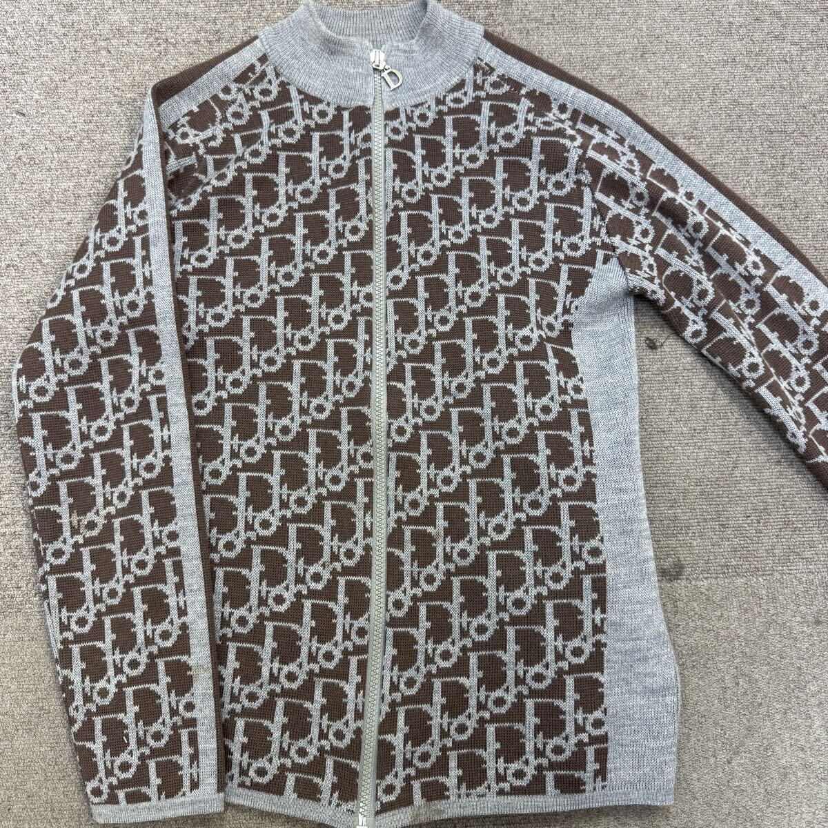 13『最高峰』 DIOR ディオール レディース ジップアップ ニット セーター ブルゾン ジャケット 40 Lサイズ トロッター ジャガードロゴ