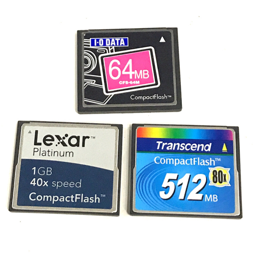 | 送料360円 Lexar 1GB 他 Transcend 512MB I・O・DATA 64MB コンパクトフラッシュ CompactFlash 3点 セット 同梱NG |