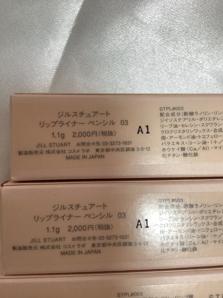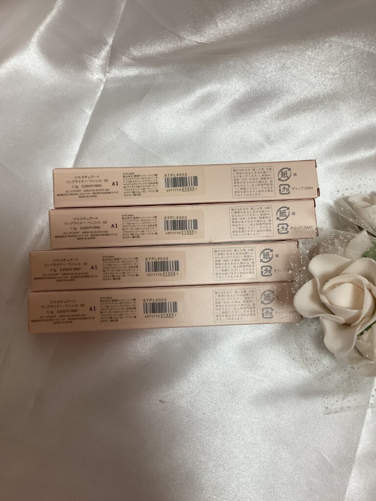 | 商品説明 | ご覧いただきましてありがとうございます。 出品させていただきます商品は ジルスチュアート リップライナー ペンシル (03) (1.1g) ×4個 になります。 商品状態 *未使用品になります。 *付属品は画像にある商品のみになります。 *花は付属しません。 |
