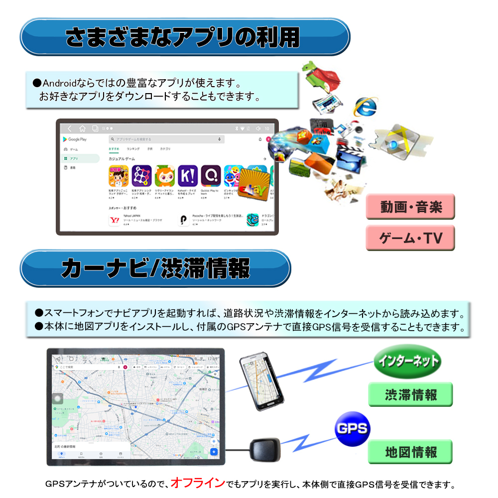 モニター部 画面サイズ 13.3インチ型ワイド液晶 画素数 縦1,920 × 横1,200 使用光源 LEDバックライト方式 タッチパネル 静電方式 ラジオ・チューナー部 受信周波数 FM:76.0 ~ 90.0MHz USBメモリー部 ファイルシステム FAT 16/32 再生信号圧縮方式 MP3、WMA、MP4、RM、AVI、MPEG2、FLV、JPEG、BMP 最大メモリ容量 256GB 供給電圧 5V 映像、音声部 最大出力 50W×4 映像出力 RCA 2系統 映像入力 RCA 2系統(バックカメラ専用入力含む) 音声出力 RCA (左,右) 専用バックカメラ入力 あり 総合 電源電圧 DC12V(動作範囲:11 ~ 16V)マイナスアース 動作温度範囲 -10℃ ~ +60℃ 付属品 電源・スピーカーコード、取付金具 日本語配線図 バックカメラセット