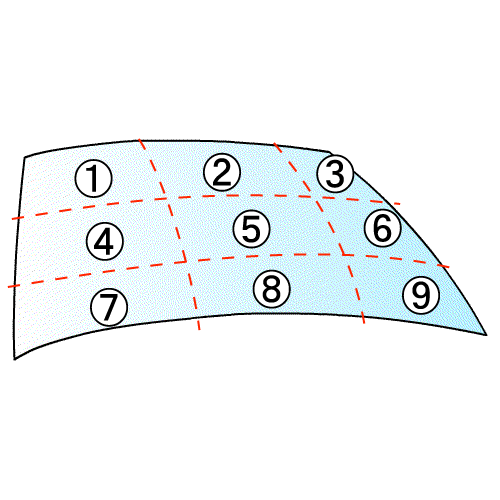 キズ情報 [13、その他、内側フチカケ直径0.5cm][5、飛び石、3個][7、飛び石、1個]