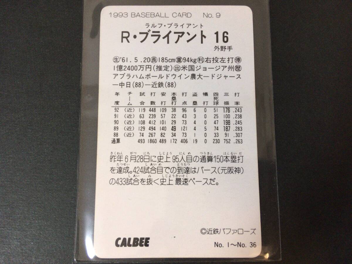 | 商品名稱 : | 1993 カルビー プロ野球カード #9 近鉄バファローズ R.ブライアント | Ralph Bryant |