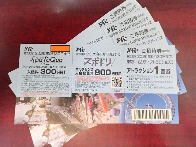 ★東京ドームシティ『アトラクション1回券+スポドリ入会料無料券(800円分)+スパラクーア割引券(300円)』4セット 有効期限~9月30日★