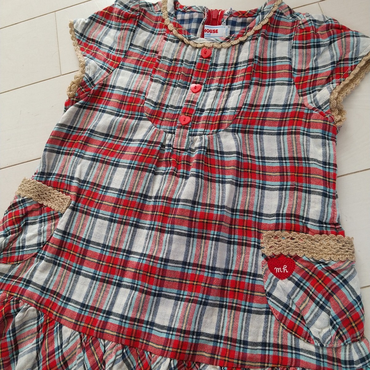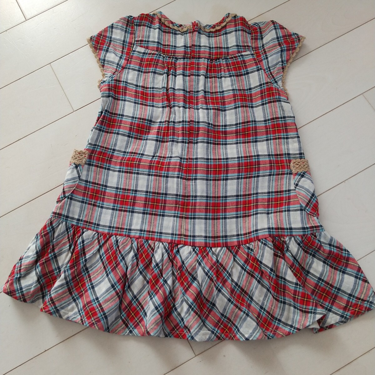 ミキハウス 100 秋用 チェック柄半袖ワンピース