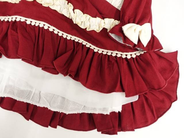 フリルとリボン、レースがキュートです。全体的に裏地付スカートにはペチコートが施され、ふっくらとしています。背面のファスナーで着脱します。