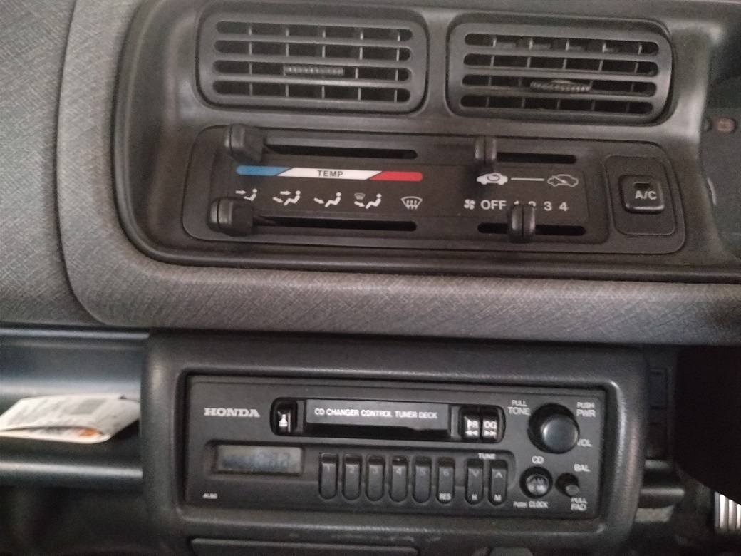 純正のCDチェンジャー対応のカセット付ステレオがついています。ラジオはAMFM聞けますが7セグの表示が経年劣化の為読めません。