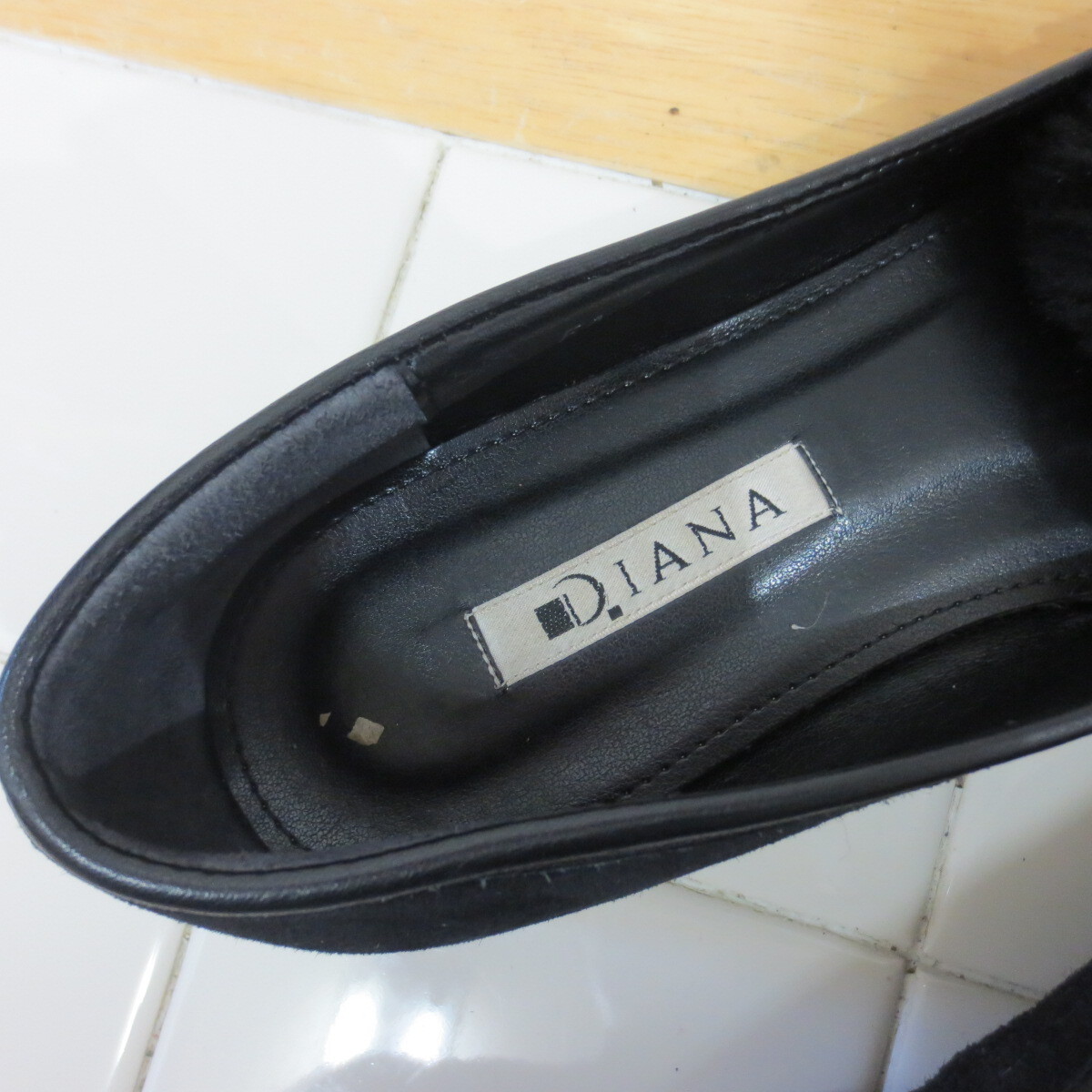 難有り ダイアナ 黒 24cm フラットパンプス ファー DIANA レタパ送料600円 k9/15