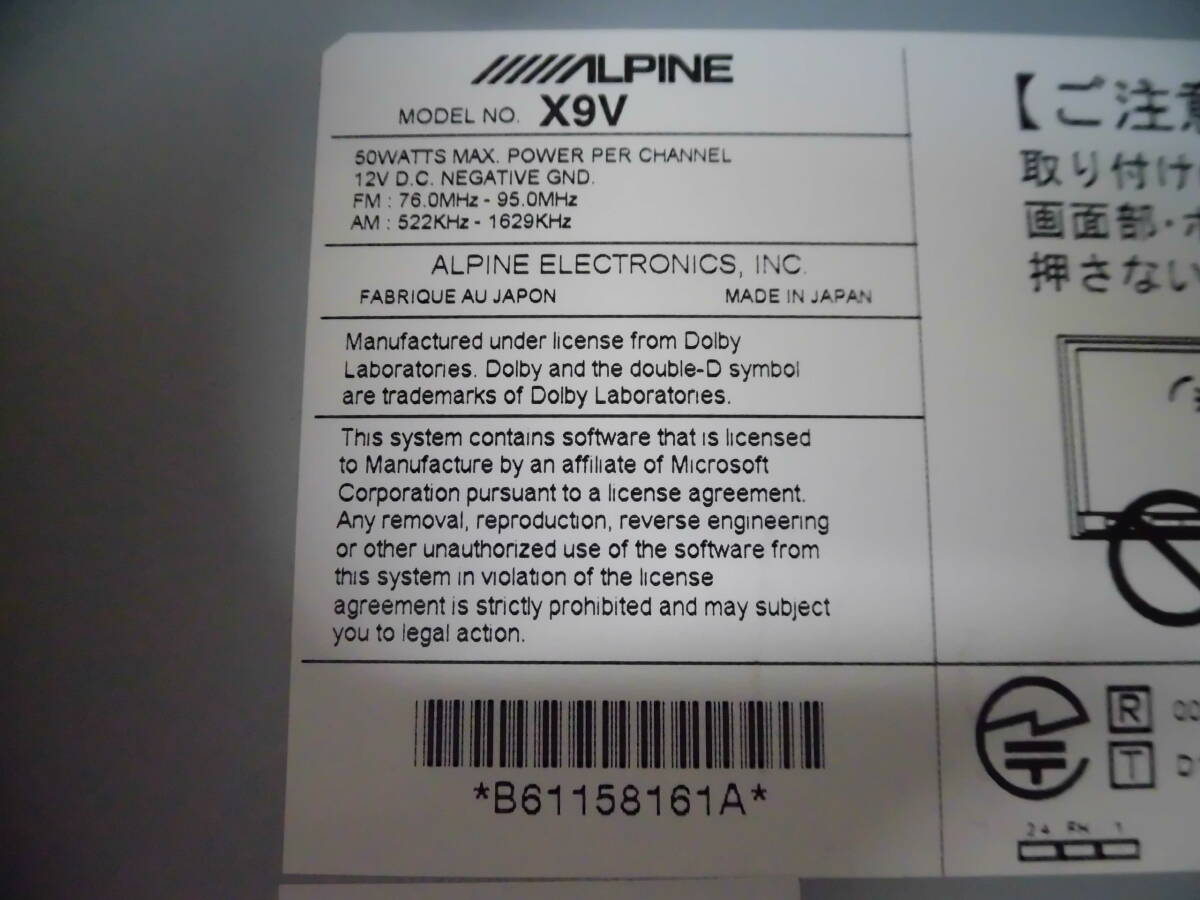 アルパイン【ALPINE】 メモリーナビ X9V エスティマ専用 (X9V-ES2) 中古品 です。 シリアルNO. B61158161A