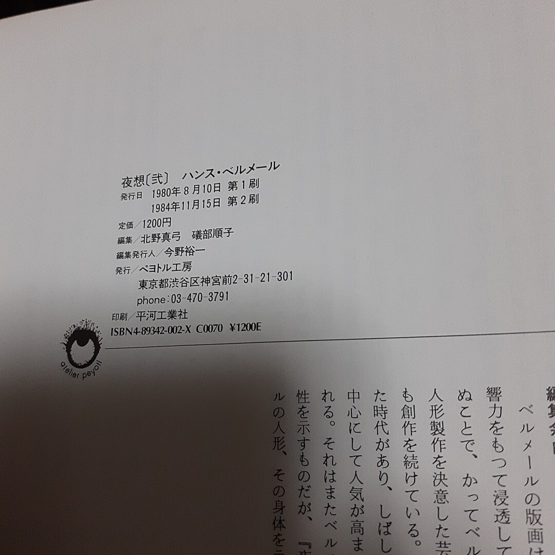 夜想 弐 特集:ハンス・ベルメール(人形ひとがた・人体)hans bellmer 付録付き 1984年 第2刷