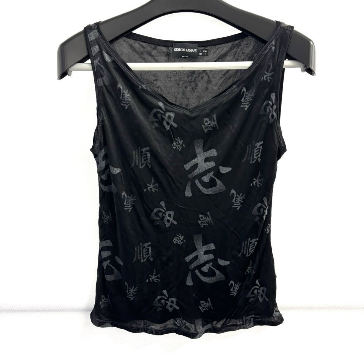 【1円スタート】GIORGIO ARMANI ジョルジオアルマーニ ノースリーブ 黒 38 Sサイズ 日本語フォント 漢字デザイン