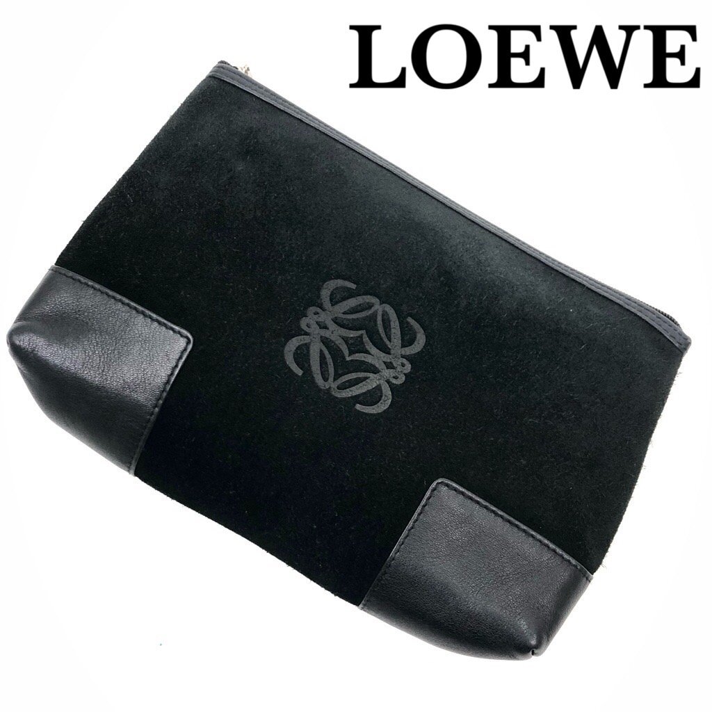 LOEWE ロエベ アナグラム スエードレザー ポーチ コスメポーチ 化粧ポーチ 黒/ブラック 小物入れ 正規品 1000円スタート 最落無
