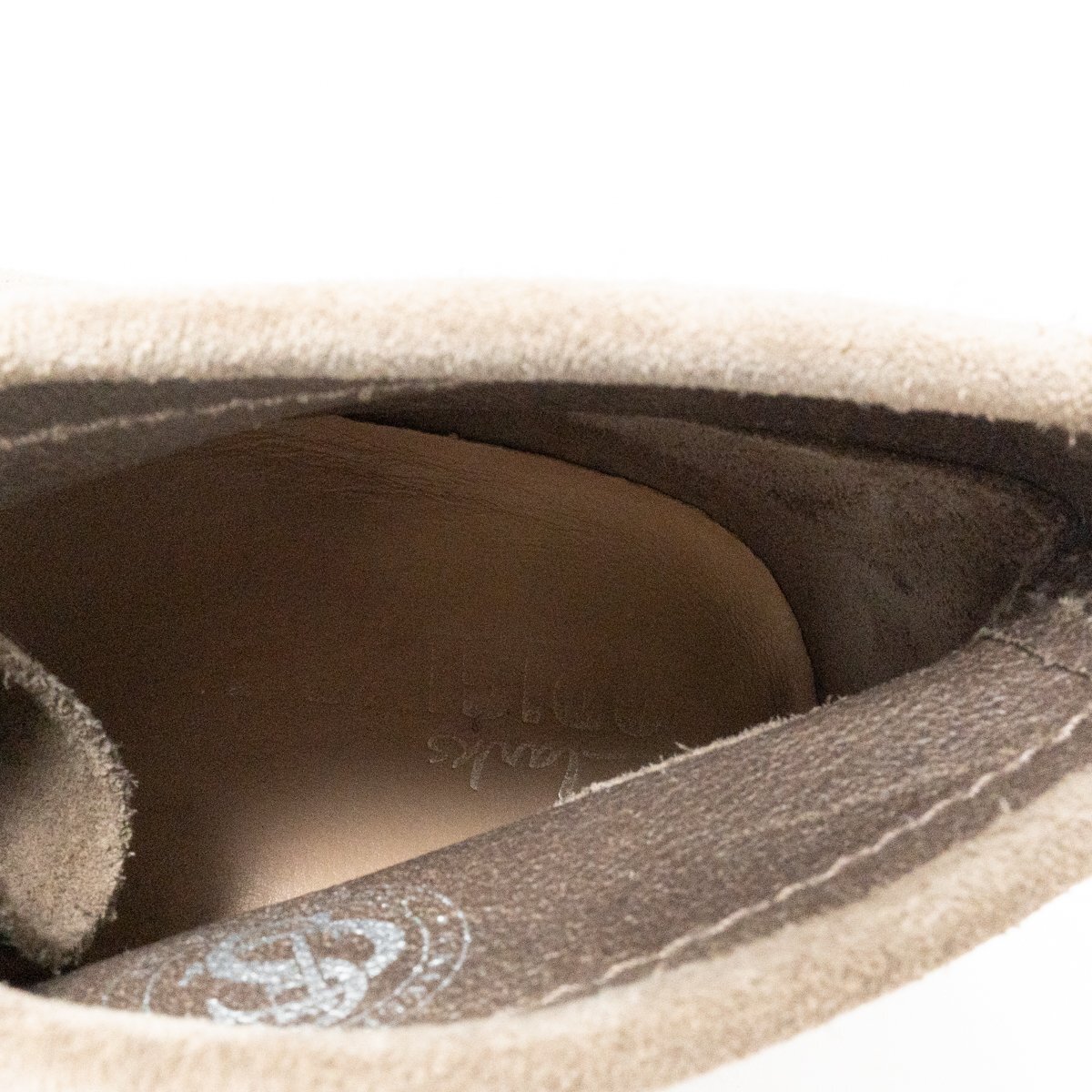| 状態 | D 靴紐ゴム紐に交換、履き口ヒール破れ、履きジワ、スエード汚れ・擦れ傷、インナー・インソール汚れ・擦れ、ソール汚れ・擦り減り、クレープソールの為付着物あり、全体的に汚れと使用感あります |