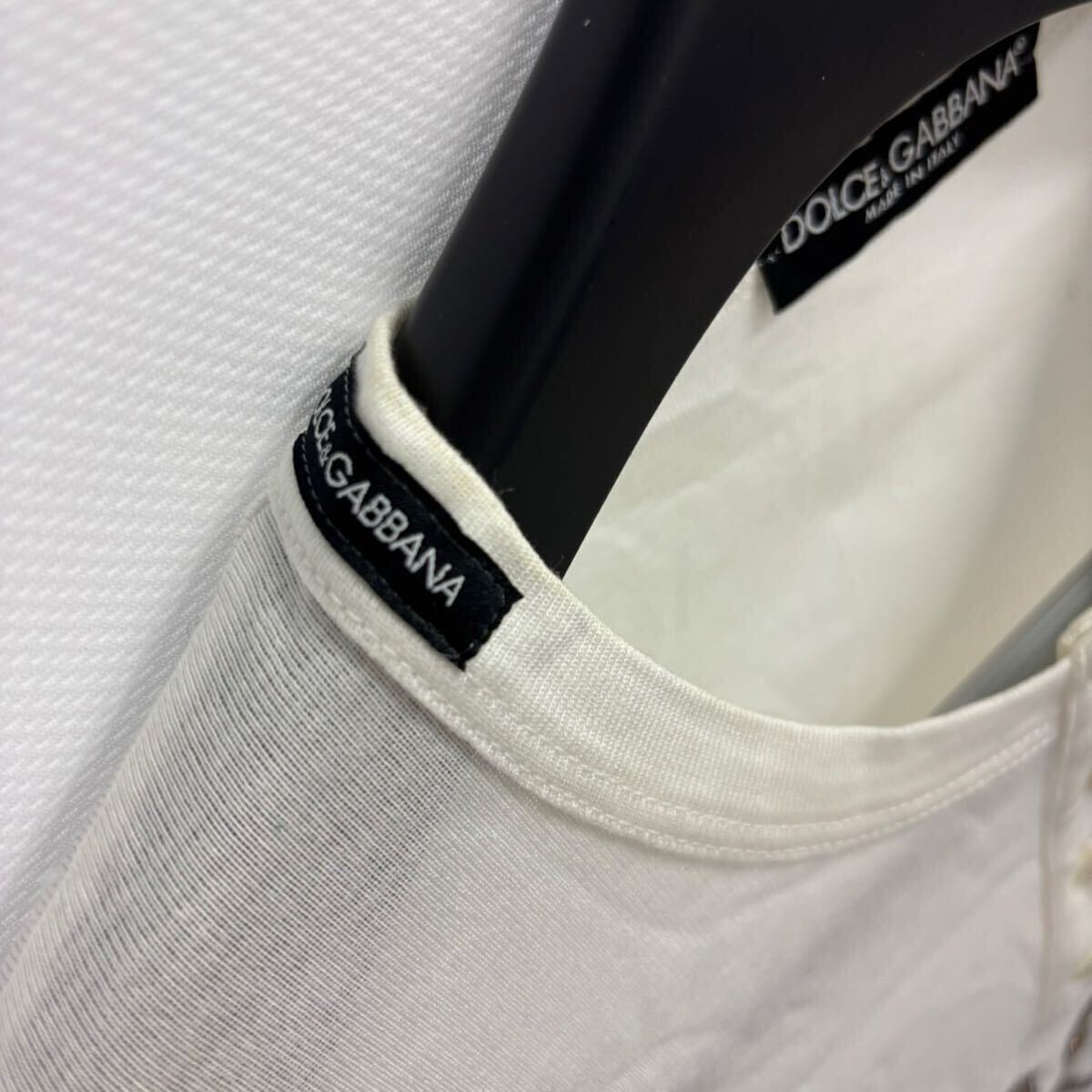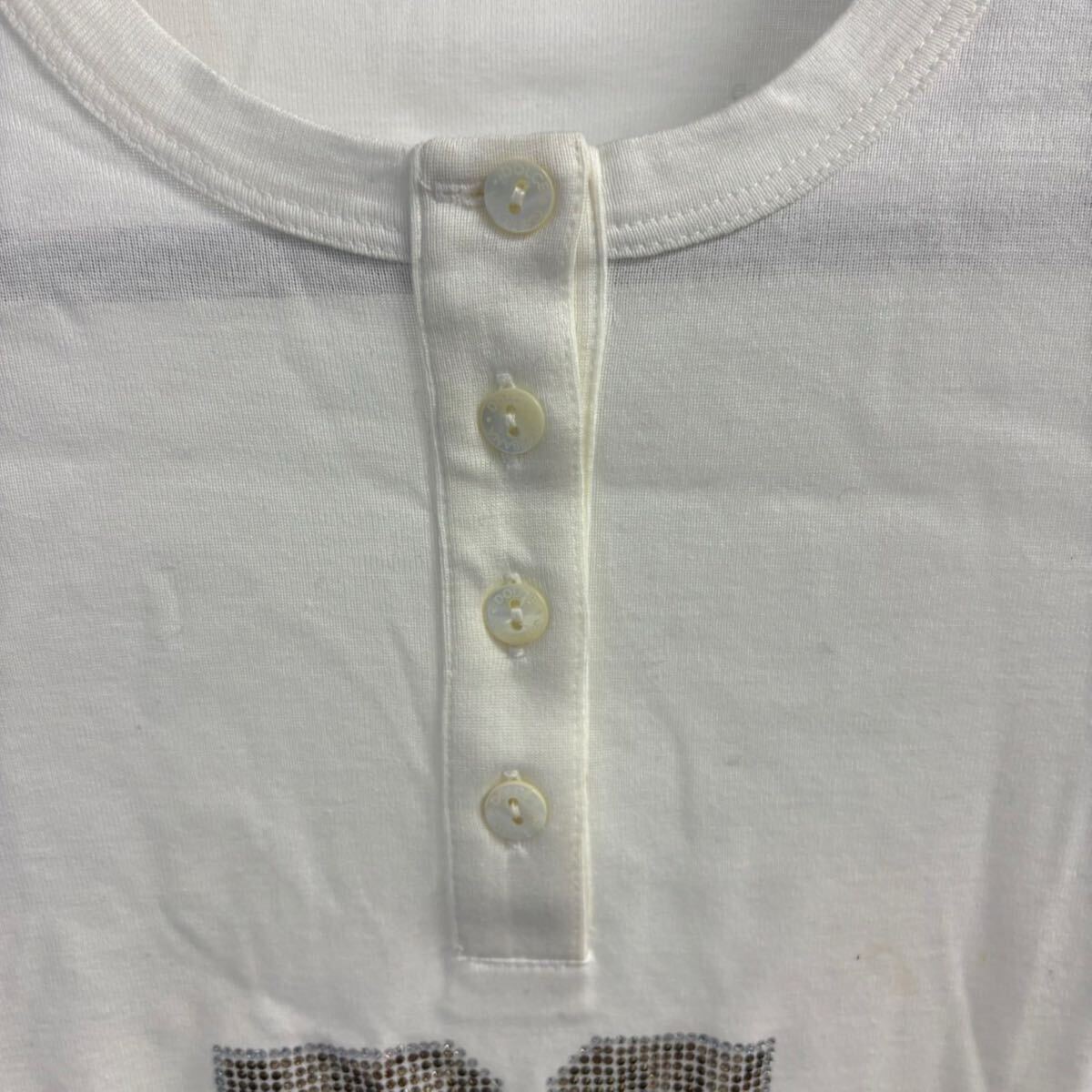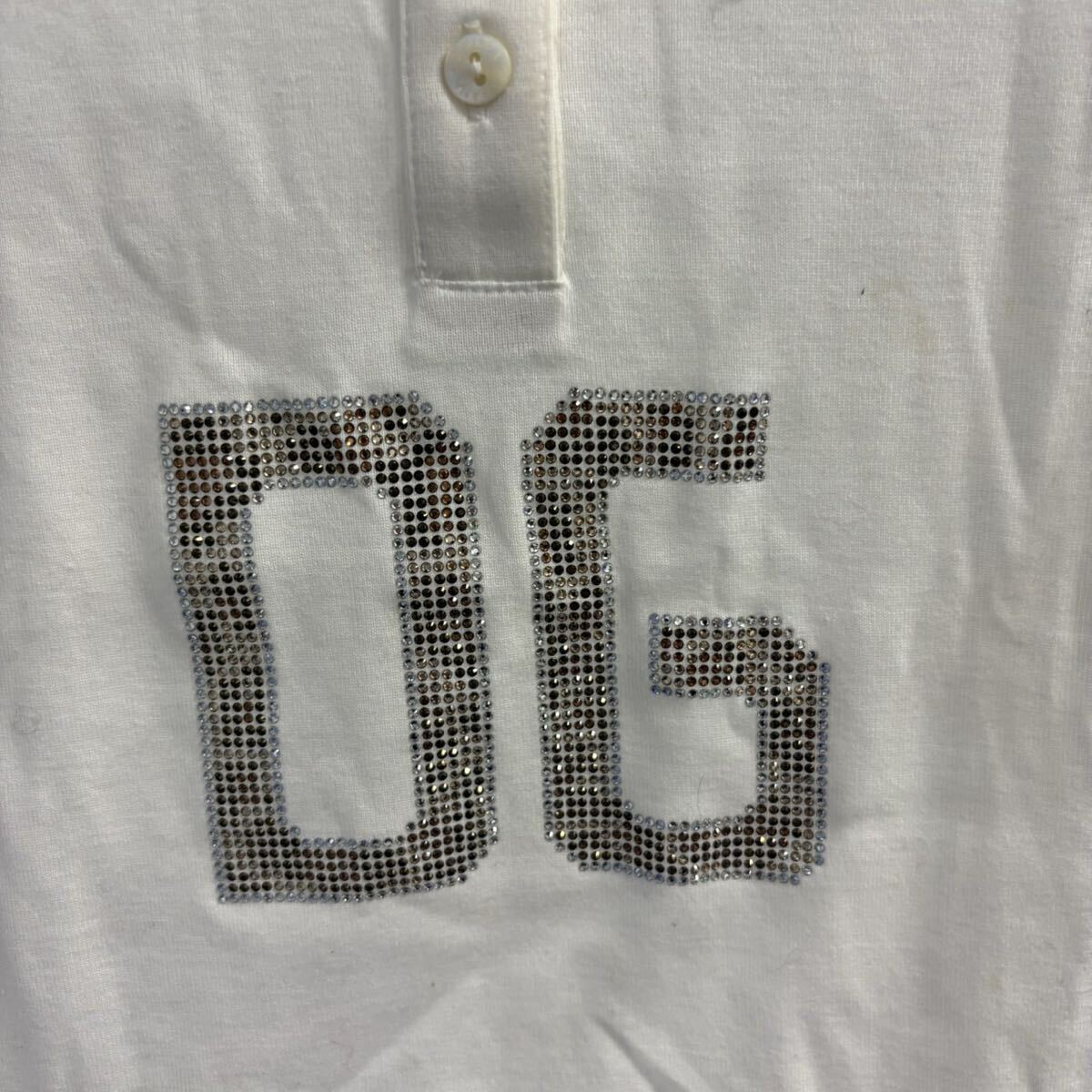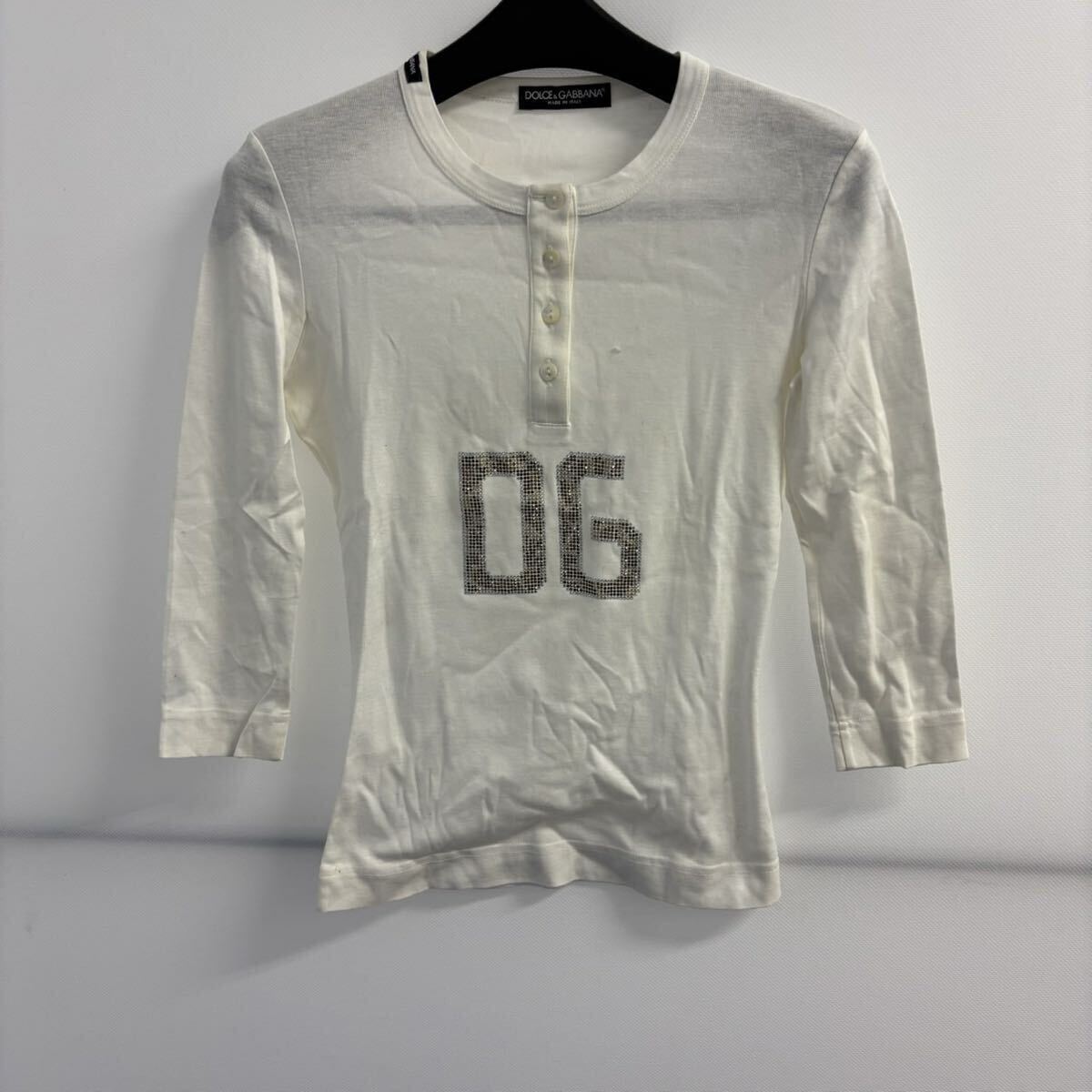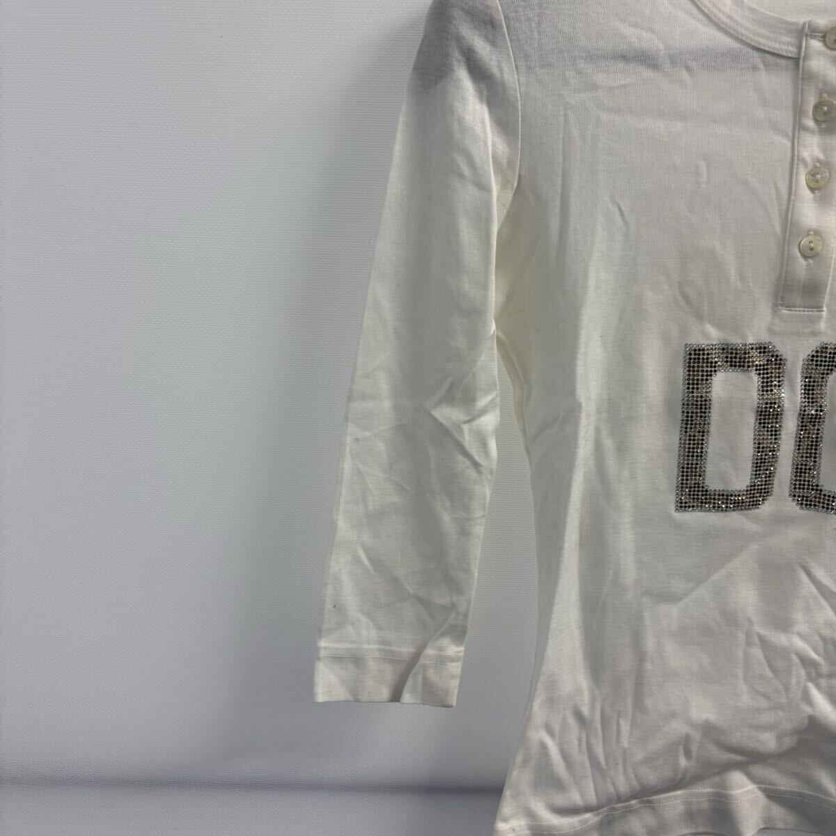 【1円スタート】Dolce & Gabbana ドルチェ&ガッバーナ イタリア製 ヘンリーネック DGロゴ スパンコール カットソー 7分袖 白 Sサイズ相当