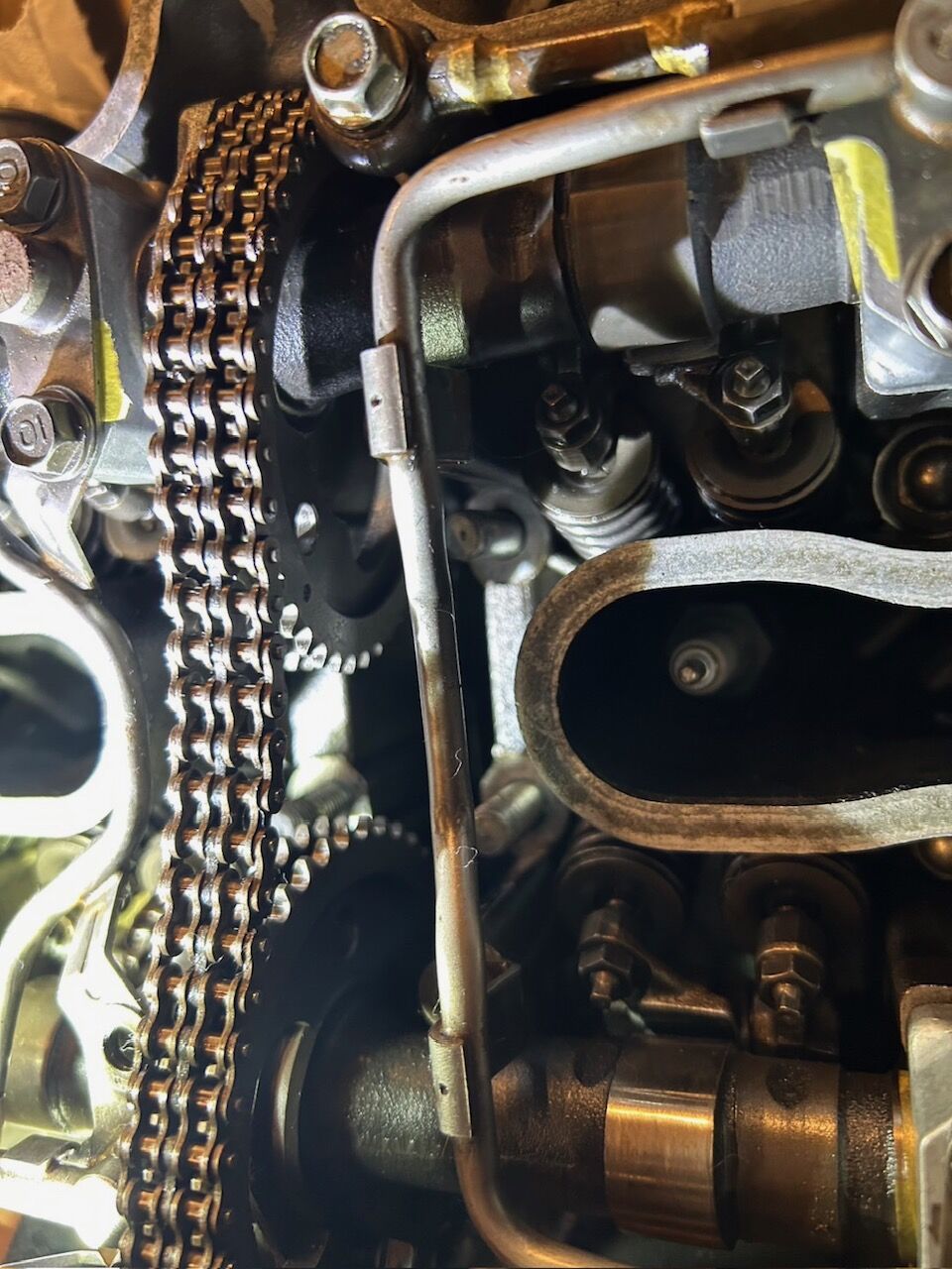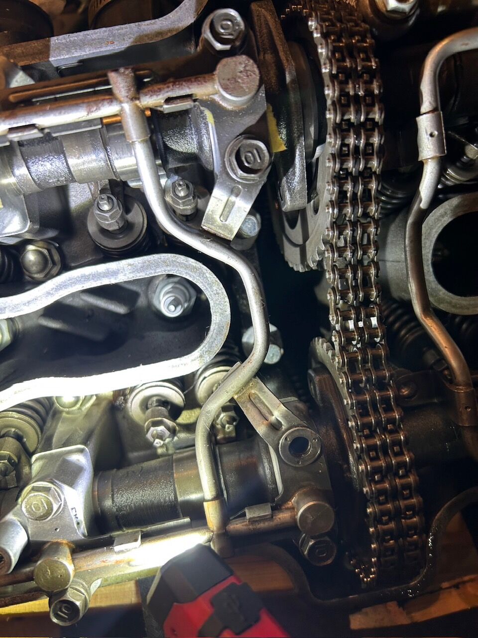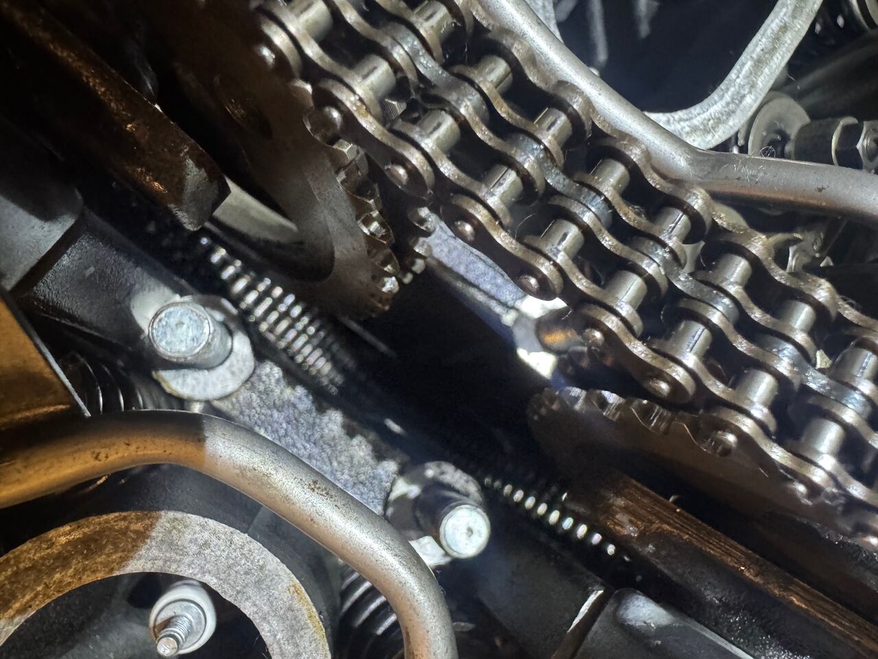 中を開けたところオイルライン、チェーンガイド、テンショナーなど足りないパーツなどあるようです