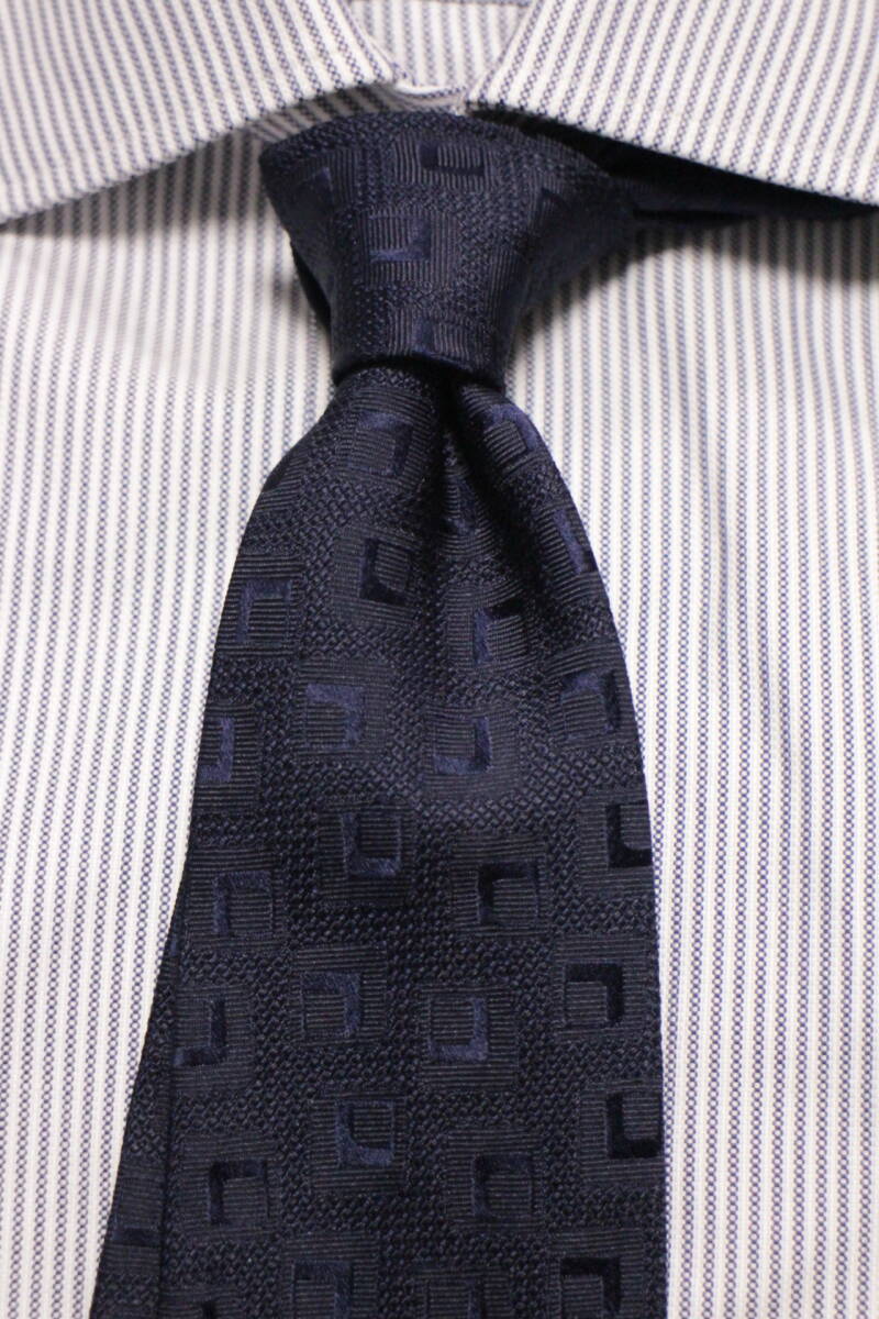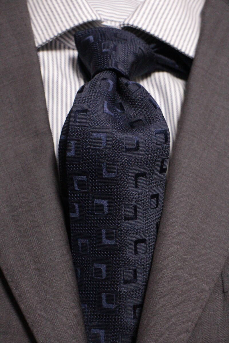 スクウェア小紋を表現した、とても凝った地紋のジャガード織ソリッドタイ。