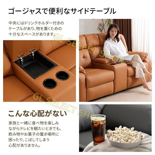 リクライニングチェア リクライニングソファ リクライニング 左右独立調節 オットマン一体型 電動ソファ 耐圧分散 二人掛け【キャメル】