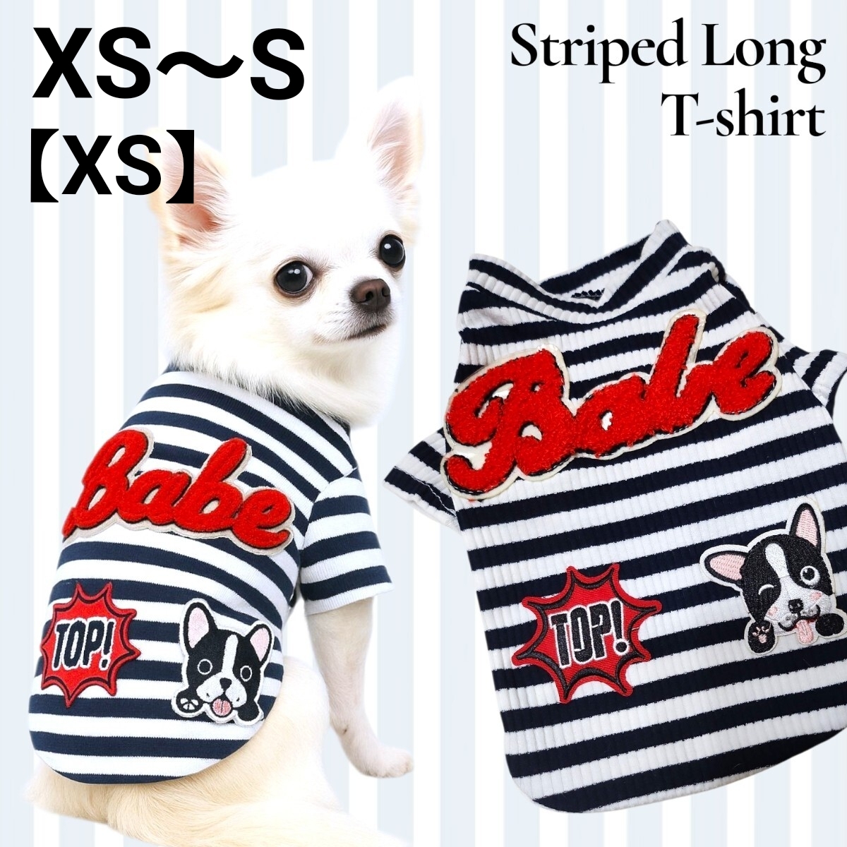 ご覧頂き有難うございます 新品 犬用 袖付きTシャツ 愛犬服 Petco ★ネイビー・ホワイト 商品 サイズ 【XS】XS~S程度 首回=約23cm 胸周=約33cm 着丈=約19cm 襟丈=約2cm ↑↑↑ ★他商品より大きめです。 上記実寸でご確認下さいませ。 ・伸縮有◎有り素材 ・かぶりスタイル 柔らかく伸縮性のあるリブ素材を使用し、ワンちゃんも快適な着心地♪ カジュアルなネイビー×ホワイトのボーダーデザインに、立体感ある可愛いワッペンがポイント! 男の子も、女の子も シンプルながらオシャレ度がワンランクアップします 旅行やお出かけ、普段のお散歩にもぴったりのアイテムです。 動きやすさとデザイン性を兼ね備えた、万能なTシャツです。 【商品ポイント】 伸縮性のあるリブ素材 ネイビー×ホワイトの爽やかなボーダー ワッペン付きでカジュアル可愛いデザイン 普段使いから旅行・行楽まで活躍 ーーーーーーーーーーーーーーー ※ 他社ブランドのサイズより若干大きめの作りです。以下実寸サイズでのご確認をお願い致します★ 商品 サイズ 【XS】XS~S程度★ 首回=約23cm 胸周=約33cm 着丈=約19cm 襟丈=約2cm 【S】S~M程度 首回=約26cm 胸周=約38cm 着丈=約23cm 襟丈=約2cm 【M】M~L程度 首回=約29cm 胸周=約45cm 着丈=約26cm 襟丈=約2.5cm 商品 サイズ 【L】L~XL程度 首回=約35cm 胸周=約49cm 着丈=約29cm 襟丈=約2.5cm ーーーーーーーーーーーーーーーーーー - デザイン: ストライプ柄、刺繍ワッペン - 素材: リブ編みの柔らかい生地 - サイズ: 長袖デザインで、体にフィット 種別...Tシャツ サイズ...XS サイズ...S その他...春 服 その他...秋冬服 #犬服 #犬用Tシャツ #犬のお洋服 #犬ファッション #小型犬服 #プードル #トイプードル服 #犬のボーダーTシャツ #おしゃれ #犬カジュアル服 #わんこコーデ #チワワ #プードル #chaneri >