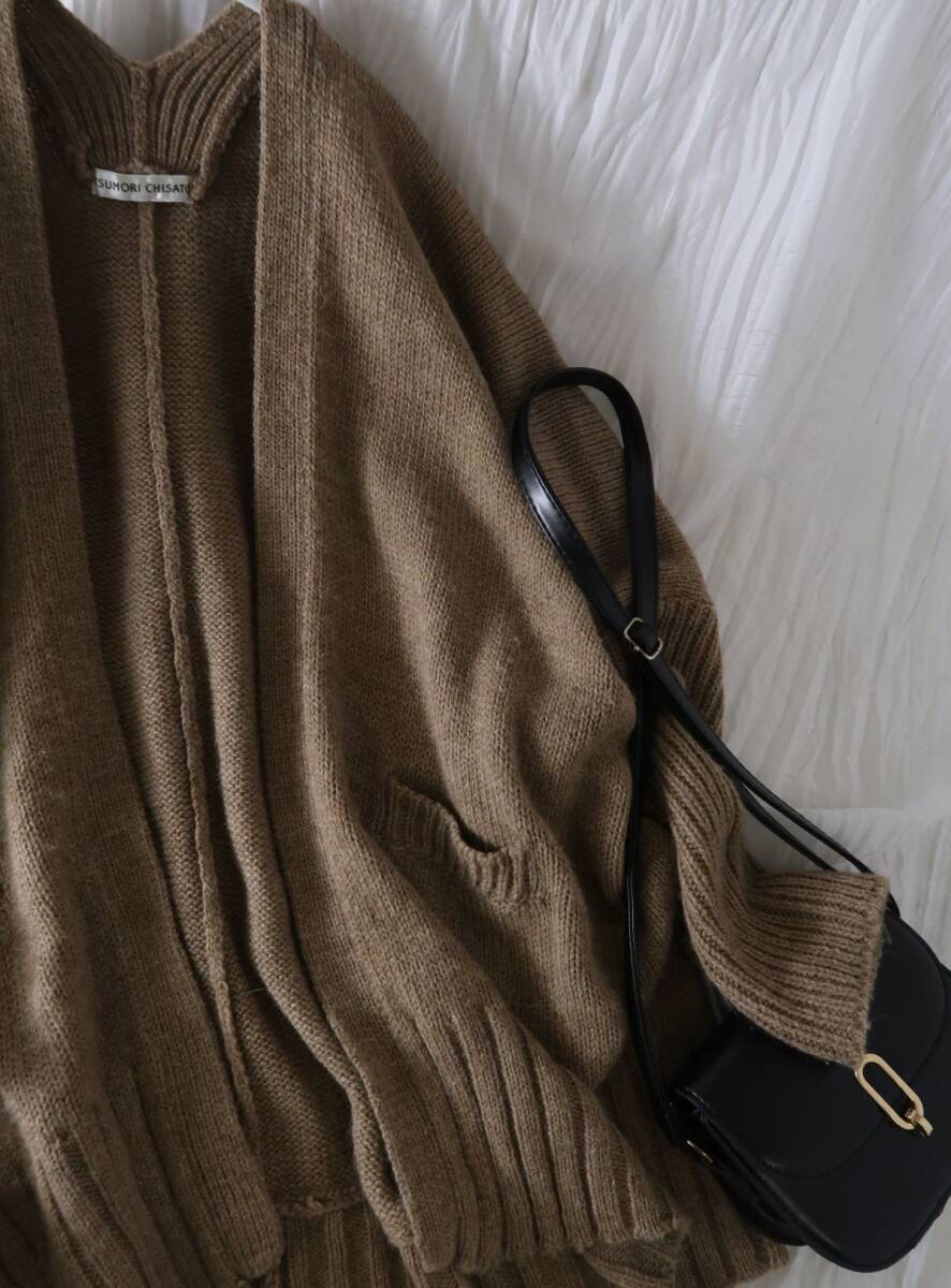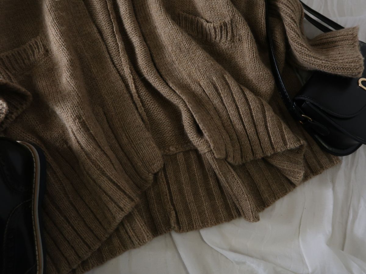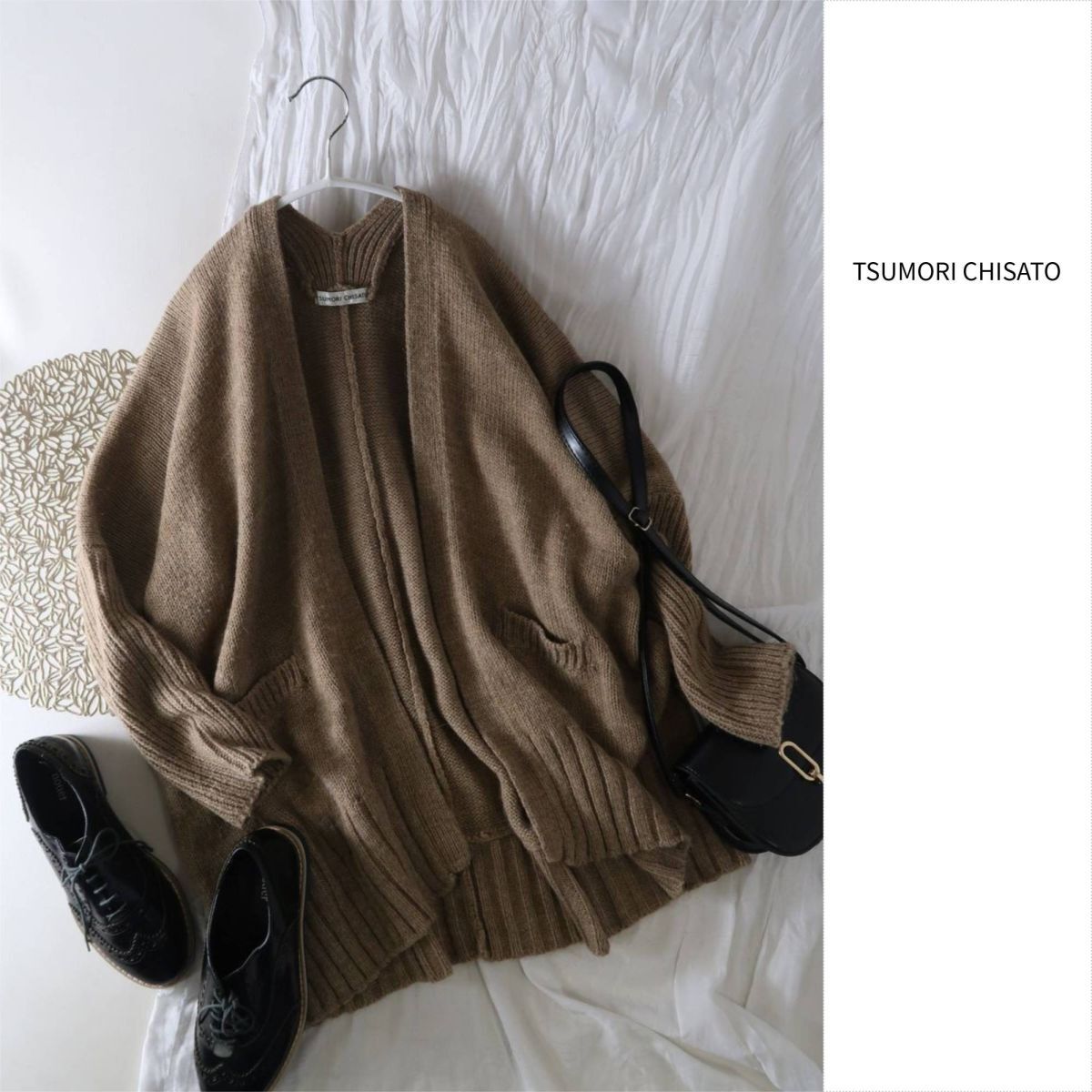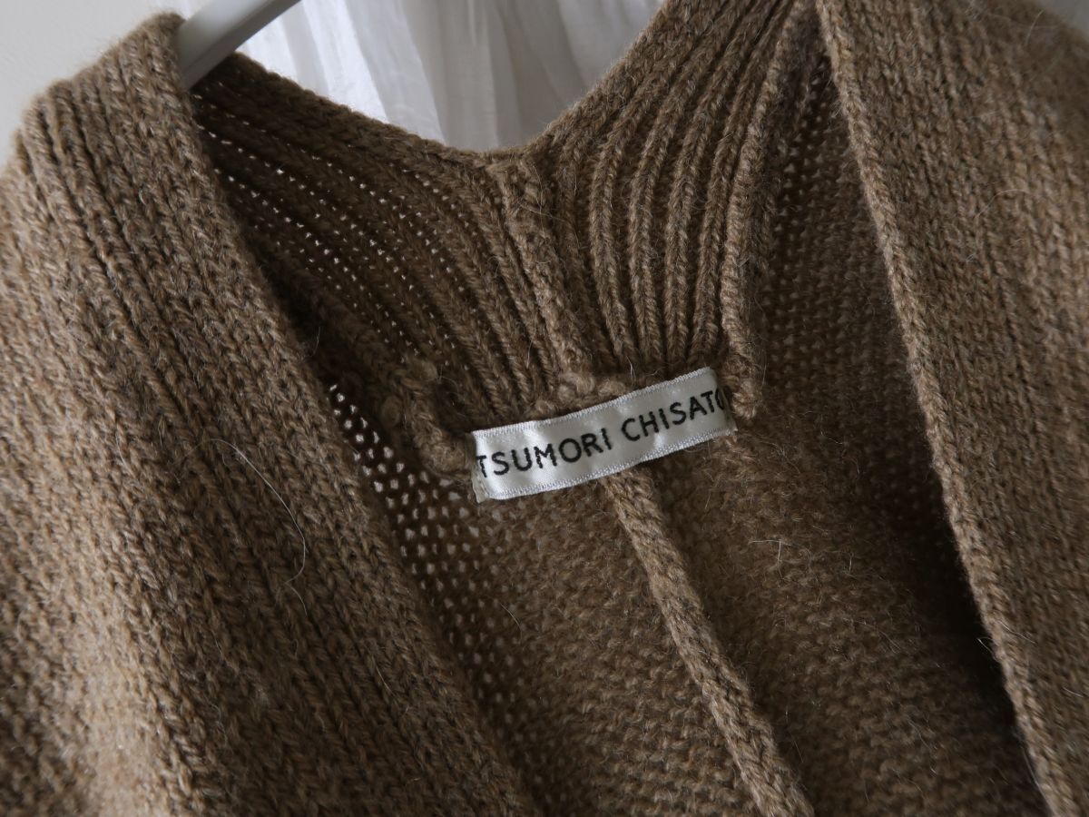 ツモリチサト TSUMORI CHISATOのとても素敵なカーディガンです。 アルパカ混の暖かみのある素材を使用したカーディガン。 ポケットの内側にラメ糸を使用した遊び心のあるデザイン。 長めに設定された袖口のリブもアクセントに。 フロントには釦等がなく、さっと羽織れるのも魅力です◎。 ゆったりとしたシルエットでパンツにもスカートにも合わせやすいアイテムです。